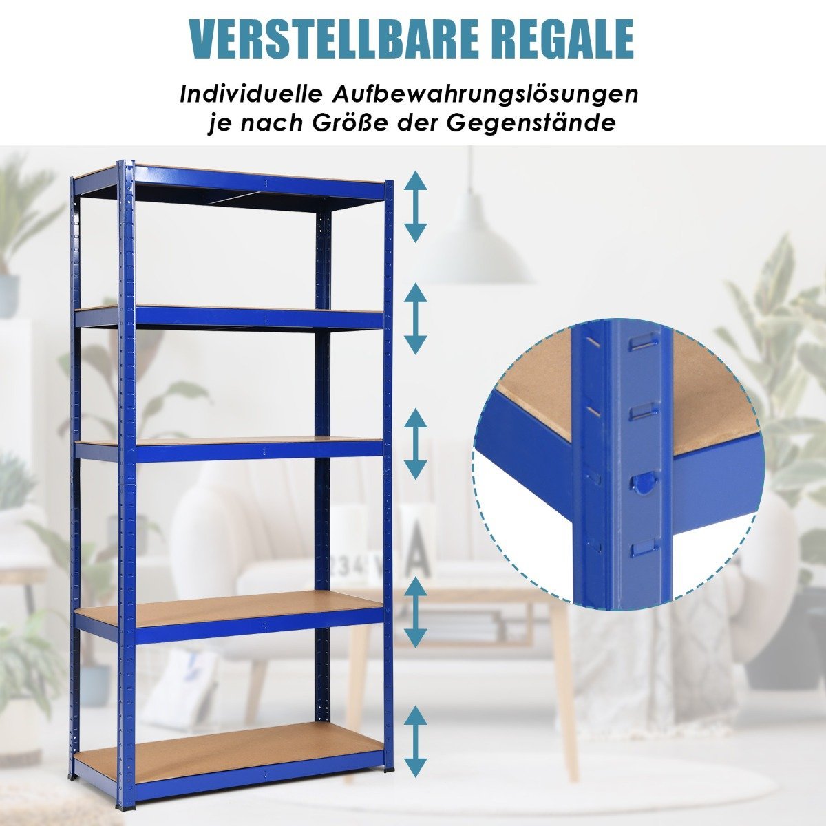 5 pakopų metalinis sandėliavimo stovas su MDF lentynomis (Mėlyna)