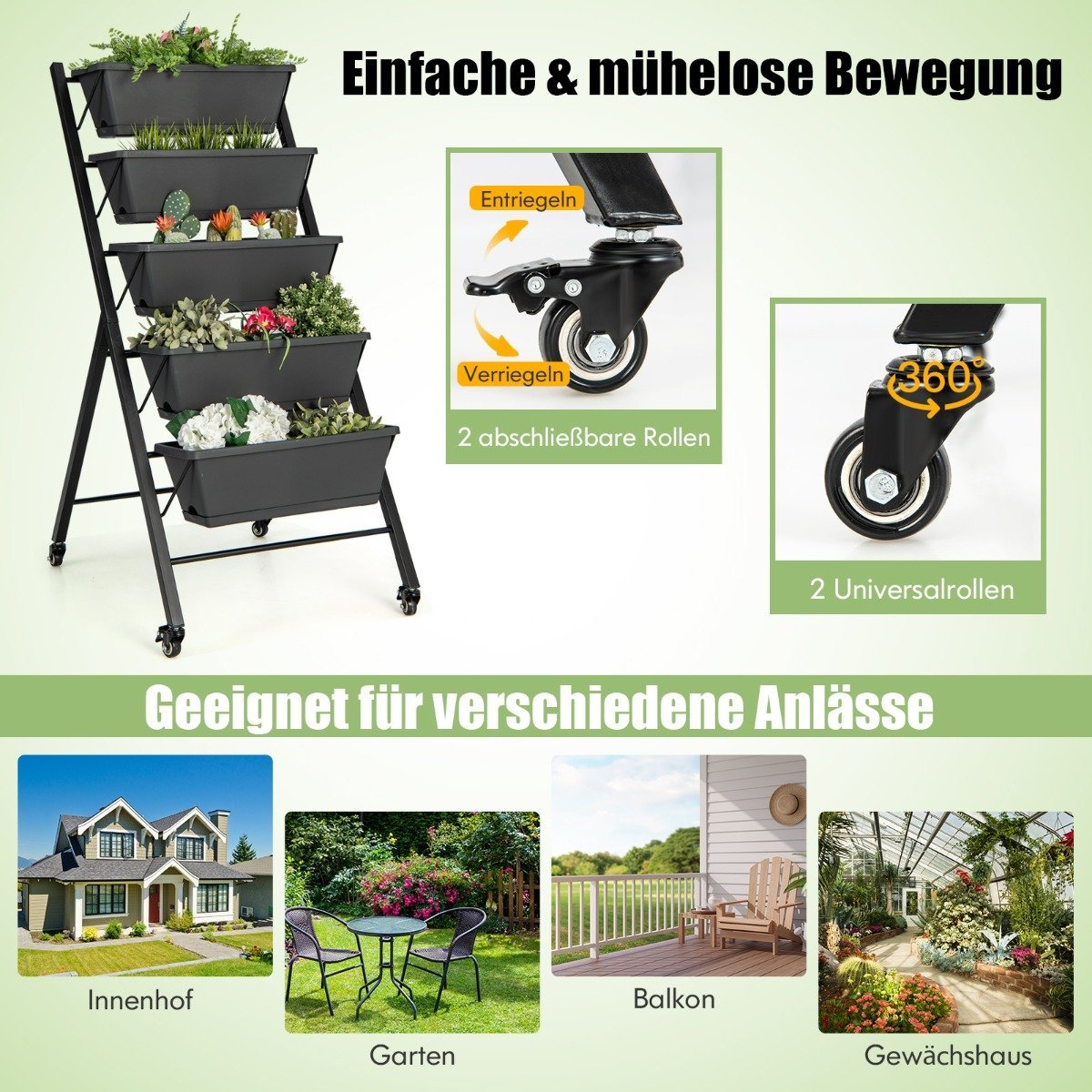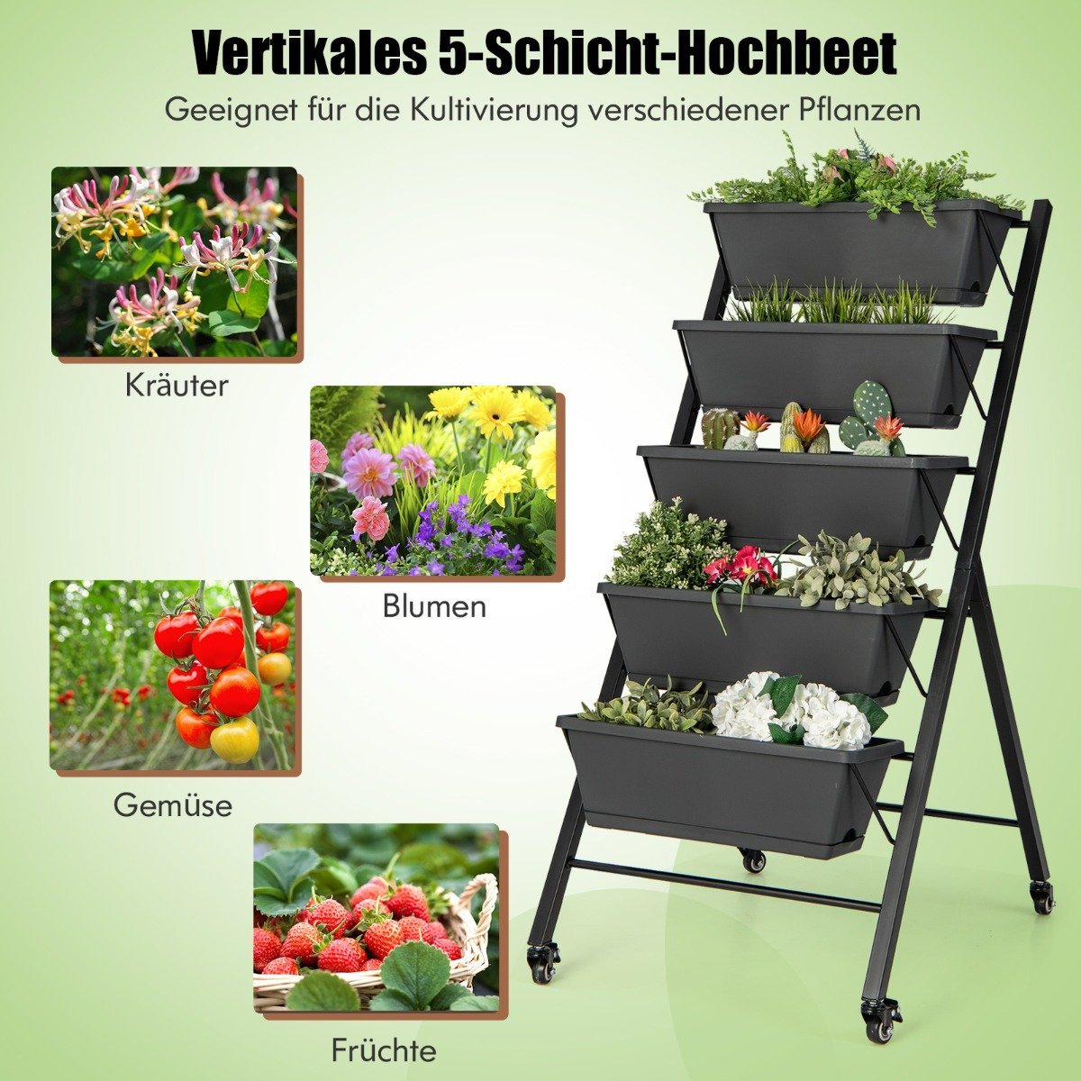 Palengvinkite sodininkavimo darbus su šiuo universaliu 5 pakopų vertikaliu daržo lysvu! Ergonomiško dizaino ir praktiškų funkcijų dėka galėsite mėgautis sodininkavimu be nuolatinio lenkimosi.