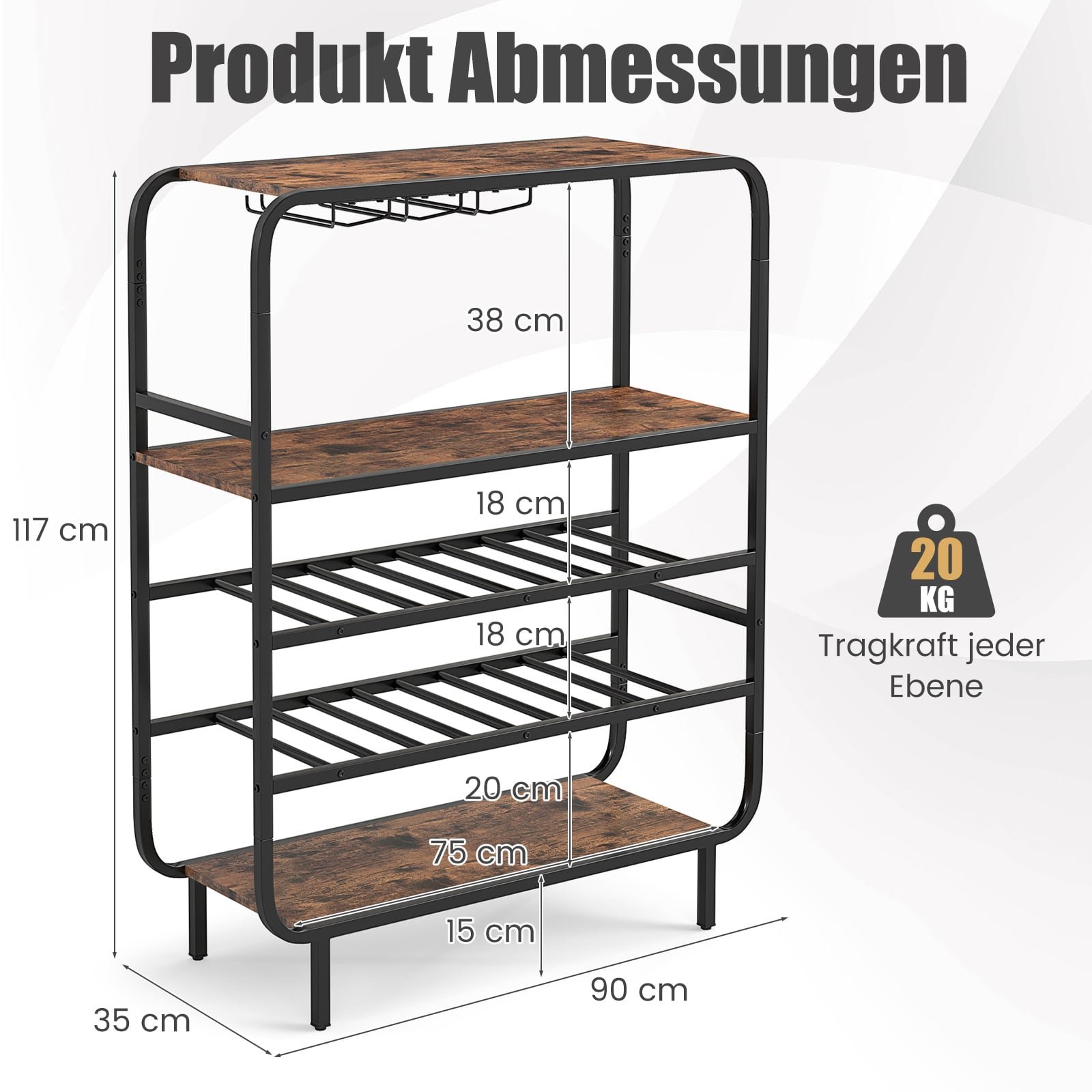 Suteikite savo namams elegancijos su šia elegantiško dizaino vyno lentyna. Šioje 5 pakopų lentynoje telpa 16 vyno butelių, ji turi 3 atvirus skyrius kitiems daiktams ir 12 taurių laikiklius, kurie leis patogiai ir tvarkingai laikyti visus jūsų vyno reikmenis. Ji puikiai derina funkcionalumą su patraukliu dizainu, todėl idealiai tinka virtuvei, valgomajam ar namų barui.