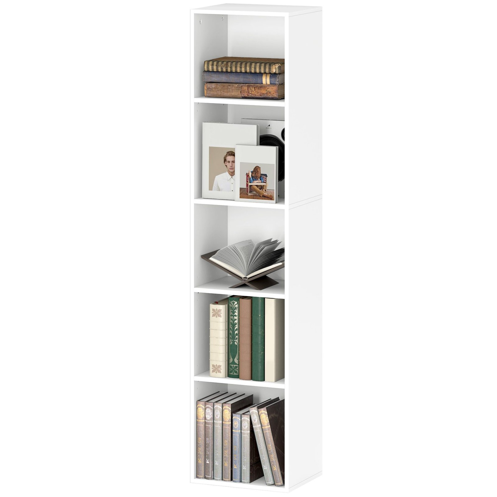 Išbandykite knygų lentynos žavesį: elegantiška, balta knygų lentyna, kuri stilingai paverčia netvarką dekoracija. Su penkiais skyriais ir trimis reguliuojamo aukščio lentynomis, ji siūlo lanksčias laikymo galimybes knygoms ir dekoratyviniams daiktams. Pagaminta iš kokybiškos medžio drožlių plokštės su melamino apdaila, ji derina eleganciją su funkcionalumu – puikiai tinka bet kuriam kambariui.