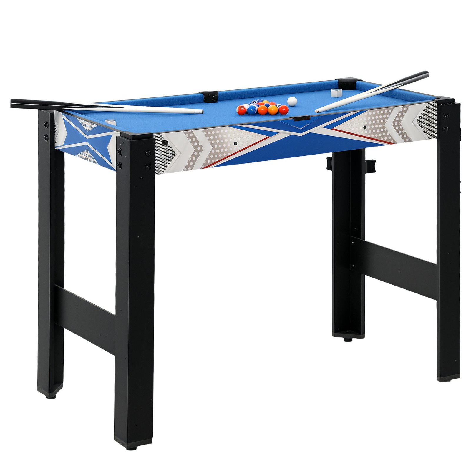 Šis 5-in-1 daugiafunkcinis žaidimų stalas sujungia penkis įtraukiančius žaidimus – biliardą, stalo tenisą, šaudymą iš lanko, ledo ritulį ir krepšinį – vienoje konstrukcijoje. Visi reikalingi žaidimų stalo priedai yra pridedami, o perjungimas tarp žaidimų vyksta lengvai ir greitai. Sukurtas pramogoms su šeima ir draugais, jis garantuoja valandų valandas džiaugsmo ir skatina bendravimą.