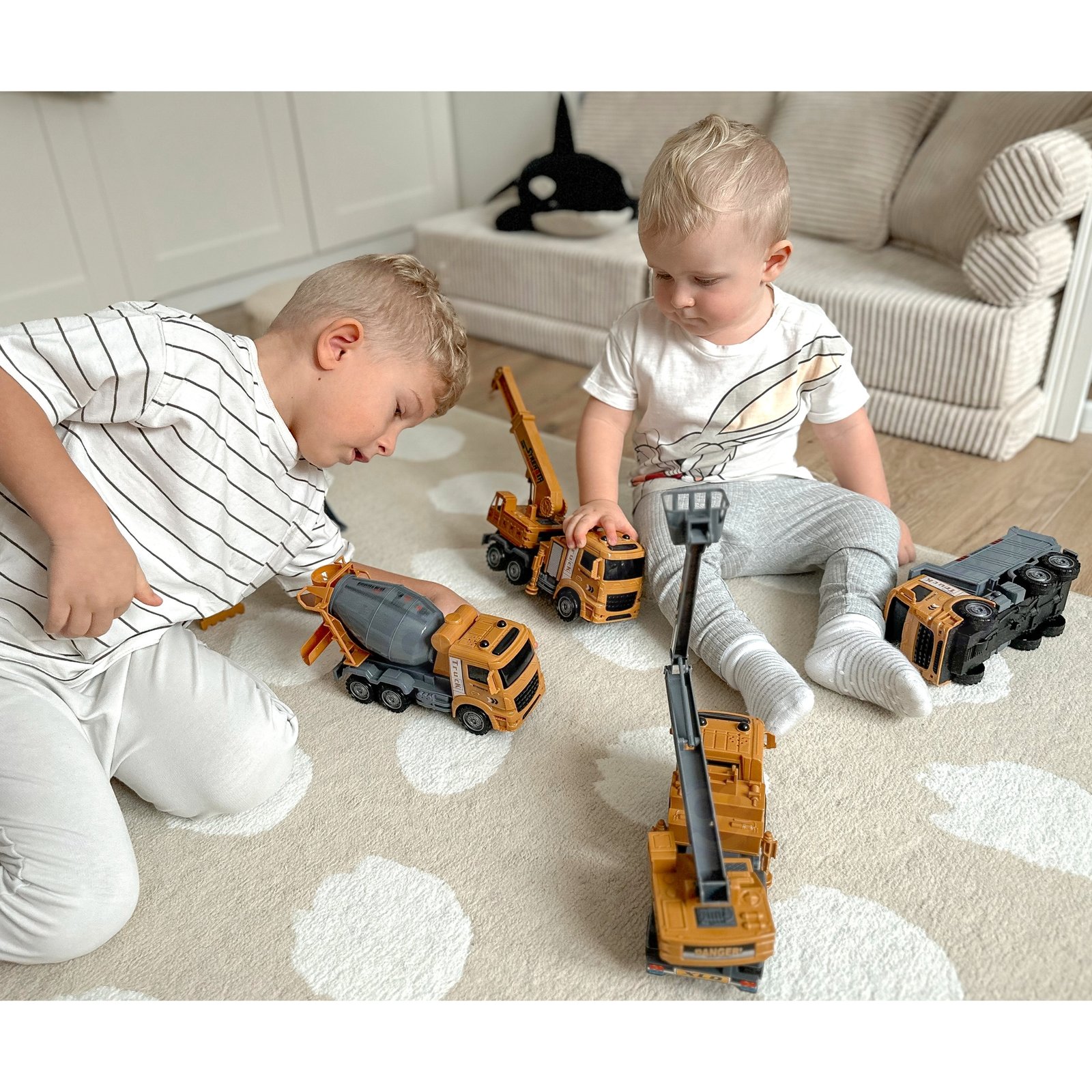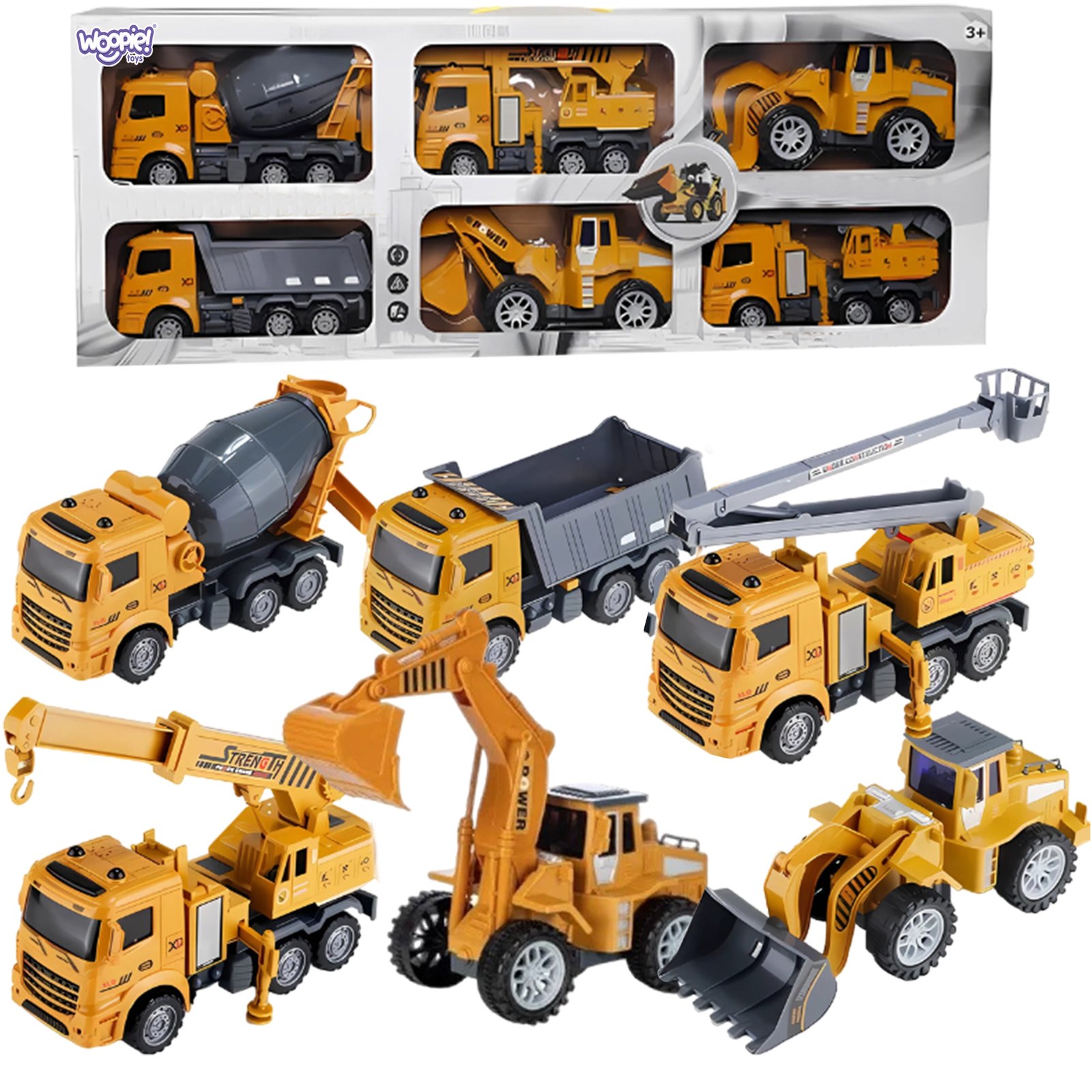 Šis didelis statybinių mašinų rinkinys pradžiugins kiekvieną mažąjį statybų technikos gerbėją. Jis leis vaikui pasinerti į transporto priemonių pasaulį ir praleisti daugybę smagių žaidimo valandų.