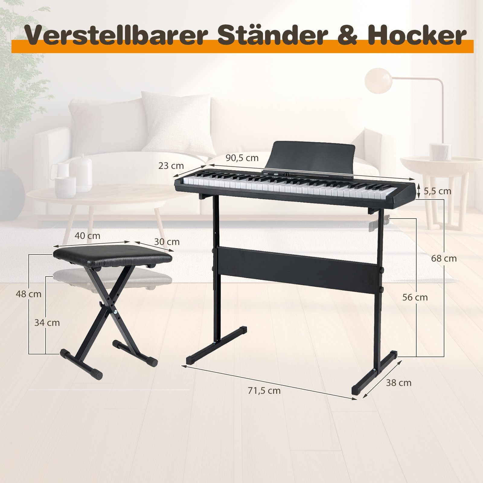 61 klavišų elektroninio pianino rinkinys su reguliuojamu stovu (Juoda)