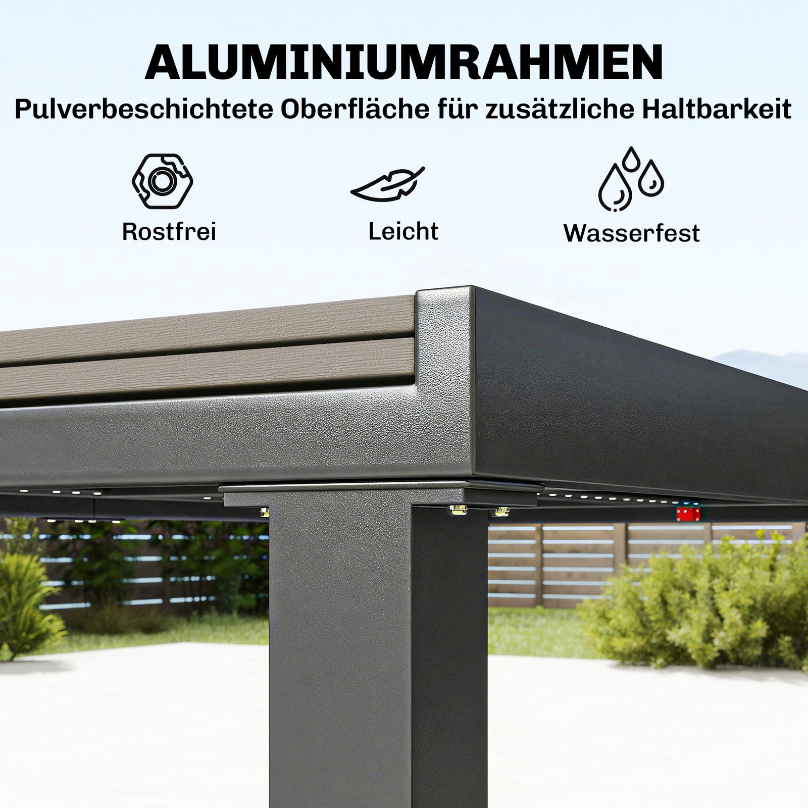 ✔ Lengvi aliuminio rėmai užtikrina atsparumą vandeniui ir rūdims, tinka naudoti lauke, idealiai tinka bet kokiam sodo baldų komplektui