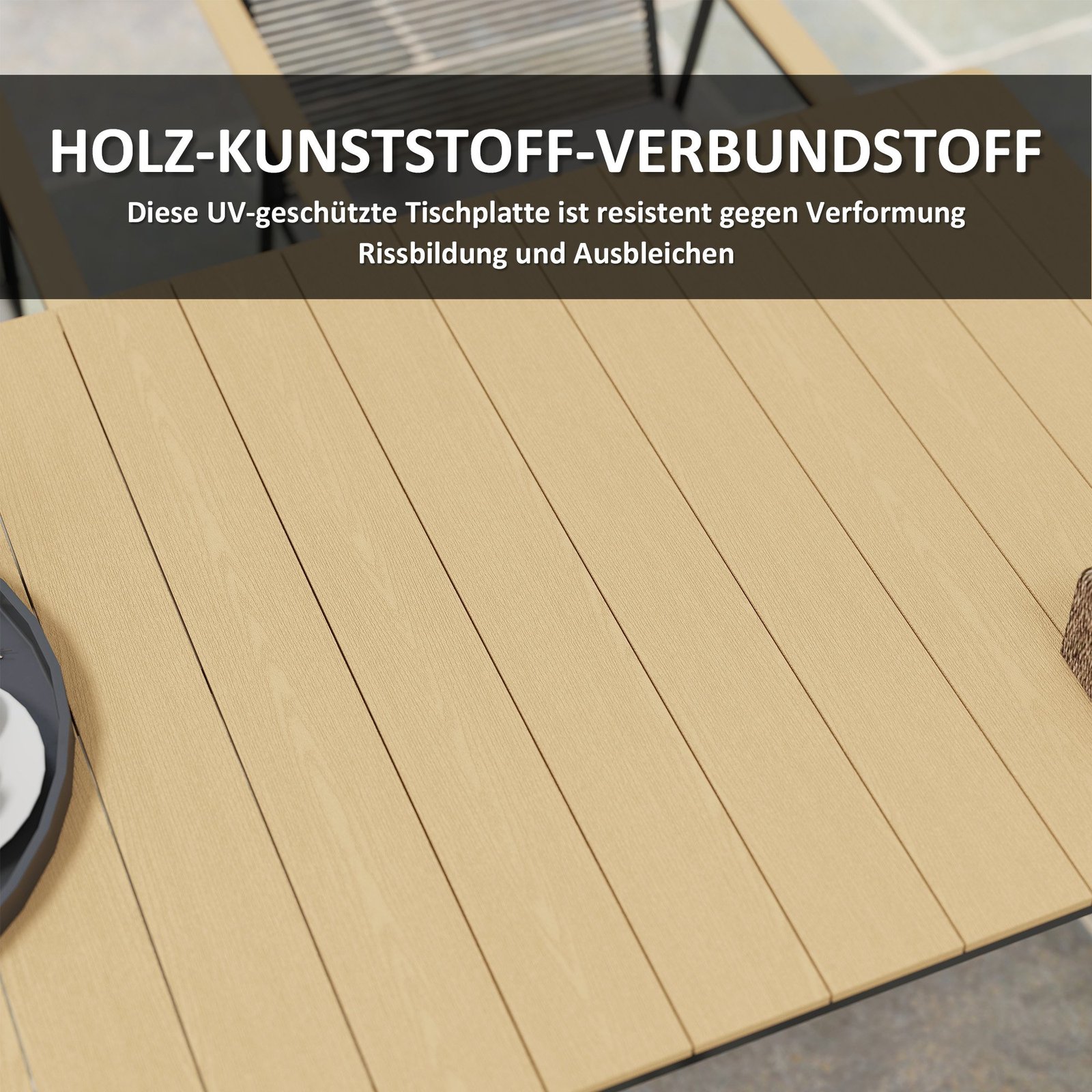 ✔ Šis oro sąlygoms atsparus stalviršis yra lengvai prižiūrimas ir valomas, su stilingu medienos raštu