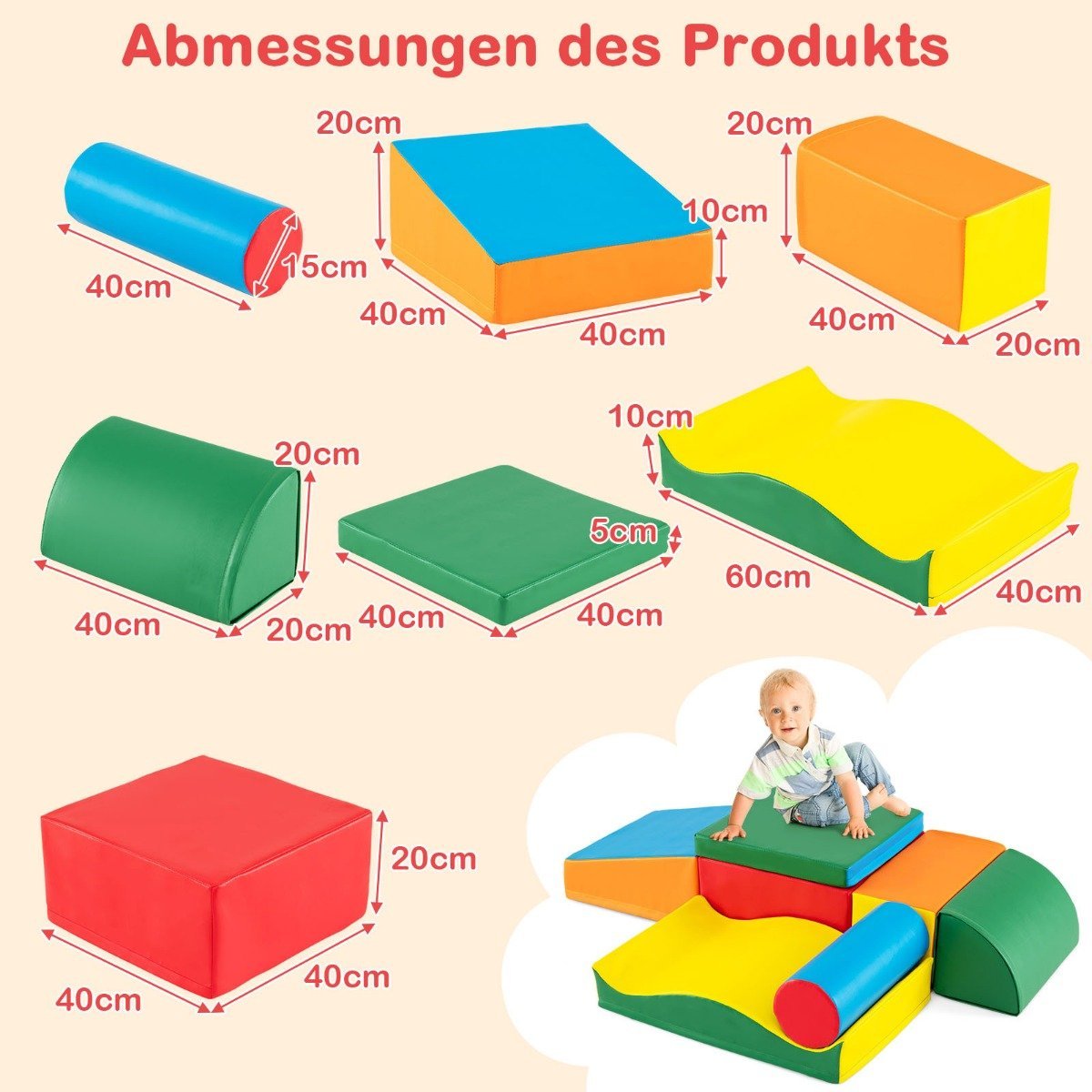 Ieškote universalaus ir vaiko ugdymą skatinančio žaidimų rinkinio? Mūsų 7 dalių minkštų putplasčio blokų rinkinys – puikus pasirinkimas! Skirtingų formų blokai leis vaikams kurti savitas konstrukcijas, o ryškios spalvos užtikrins ilgalaikį susidomėjimą ir žaidimo džiaugsmą. Dėl didelio tankio EPE putplasčio ir aukštos kokybės dirbtinės odos dangos, šis rinkinys yra patvarus ir saugus.