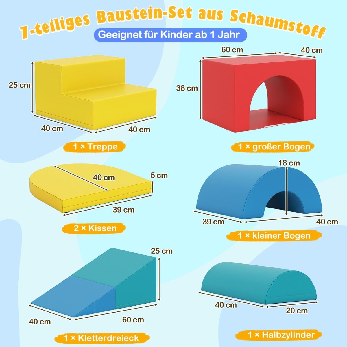 Sukurkite savo vaikams linksmą ir saugų žaidimų pasaulį su šiuo 7 dalių laipiojimo blokų rinkiniu! Minkšta PU oda ir aukštos kokybės putų užpildas užtikrina komfortą bei saugumą, o lipniosios juostelės leidžia lengvai sujungti ir formuoti įvairias konstrukcijas. Tai puiki priemonė skatinti vaikų fizinę raidą ir kūrybiškumą.