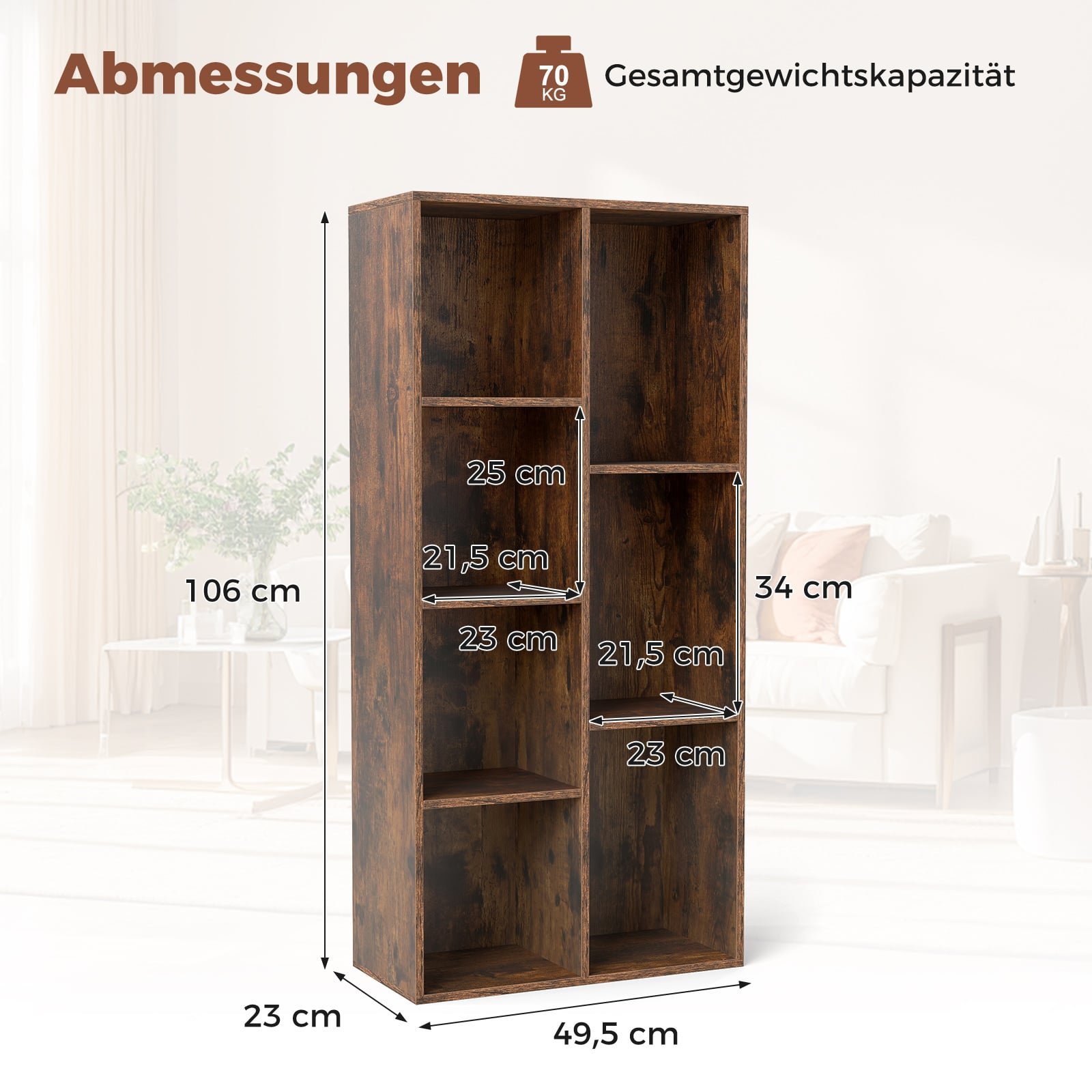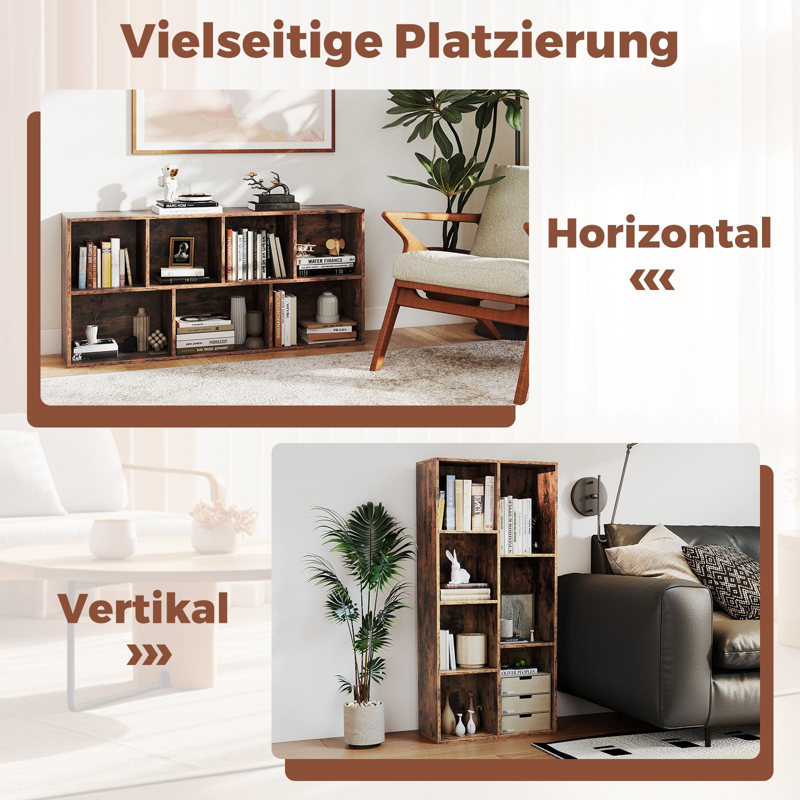 7 kubelių knygų lentyna pastatoma vertikaliai arba horizontaliai (Kaimiška ruda)