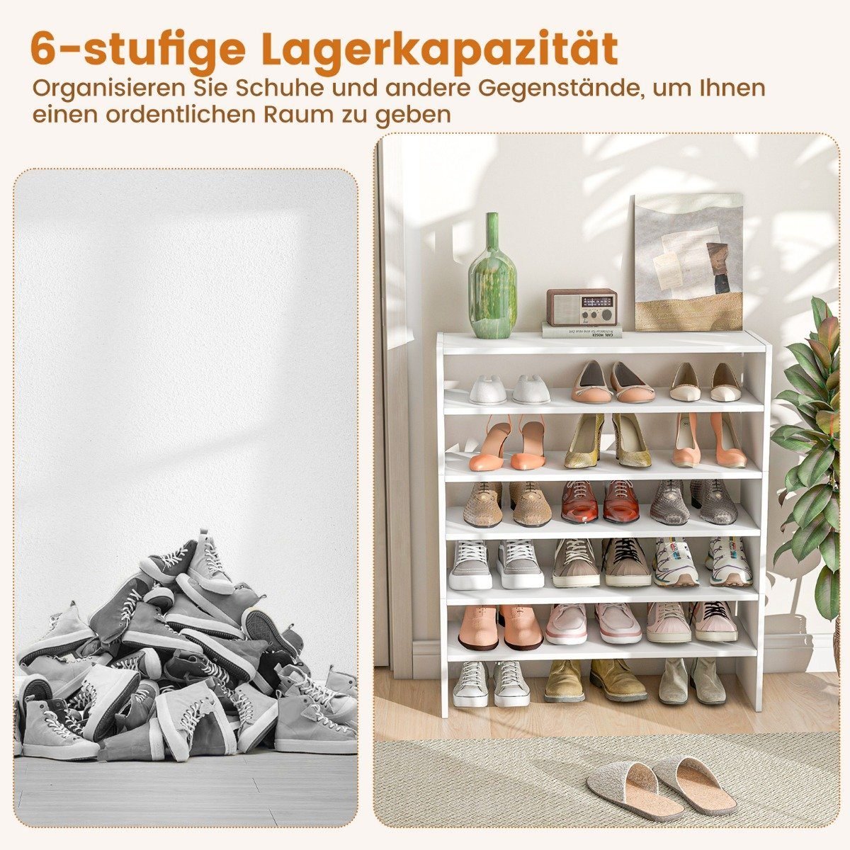 Patobulinkite savo namų organizaciją su šia 6 pakopų batų lentyna. Ji siūlo lanksčias konfigūravimo galimybes, leidžiančias pritaikyti lentyną pagal jūsų poreikius. Dėl tvirtos konstrukcijos ir modernaus dizaino ši lentyna suteiks stiliaus jūsų namams.