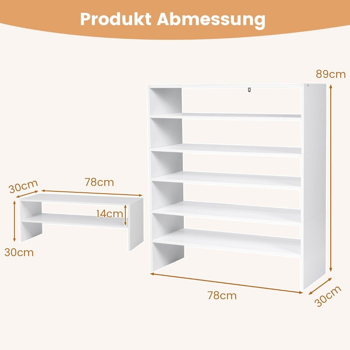 78 cm ilgio šešių pakopų batų lentyna (Balta)