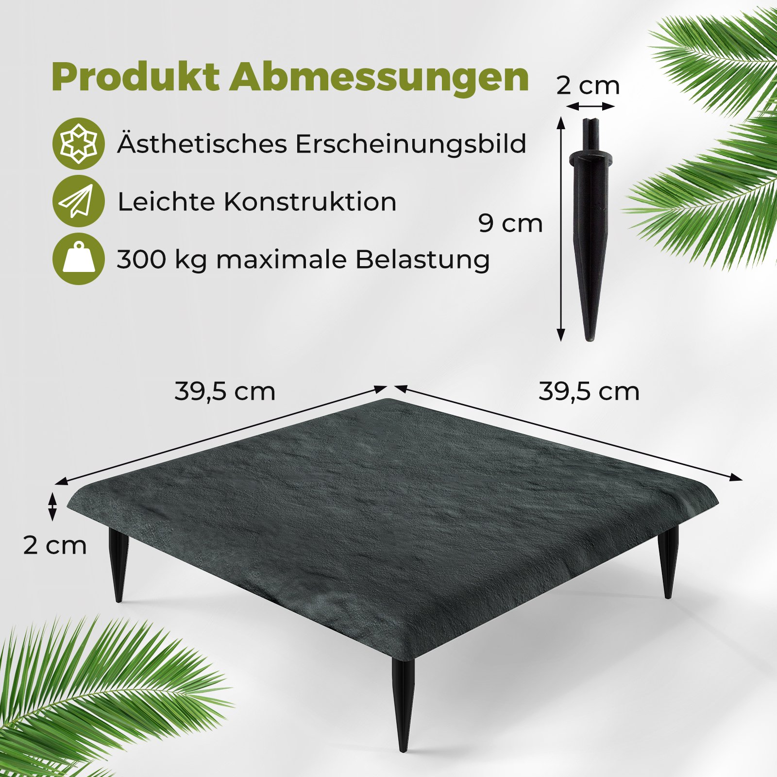 - Vienos plokštės matmenys: 39,5 x 39,5 x 2 cm (I x P x A)