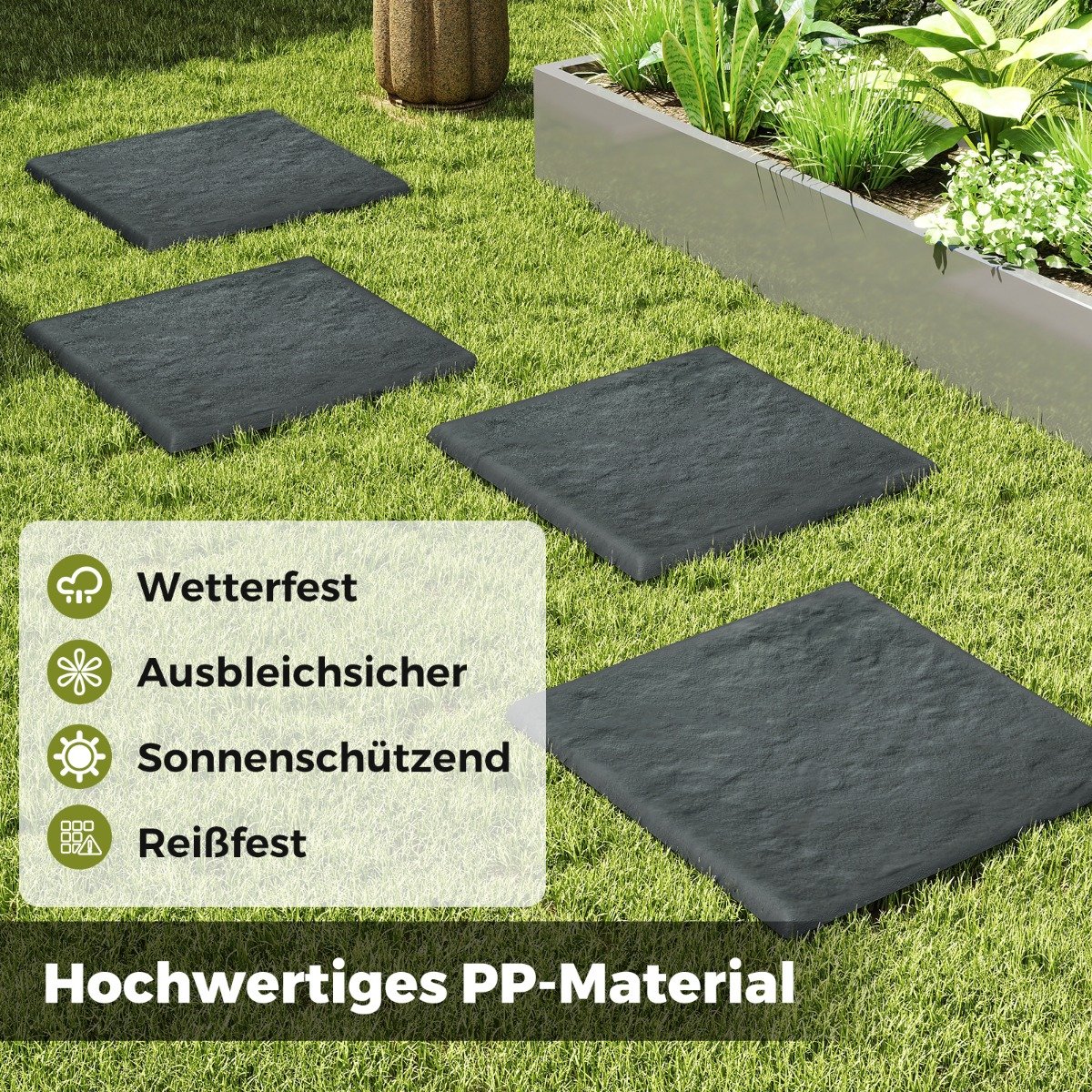 Pagerinkite savo sodo estetiką ir funkcionalumą su šiomis patvariomis sodo takų plokštėmis. Pagamintos iš PP (polipropileno), atsparaus įvairioms oro sąlygoms, ir pasižyminčios natūralaus akmens imitacija, jos užtikrina ilgaamžiškumą bei atsparumą blukimui ir įtrūkimams. Kiekviena plokštė padeda sukurti aiškius takus, suteikdama jūsų vejai ar kiemui struktūros ir rafinuotumo.