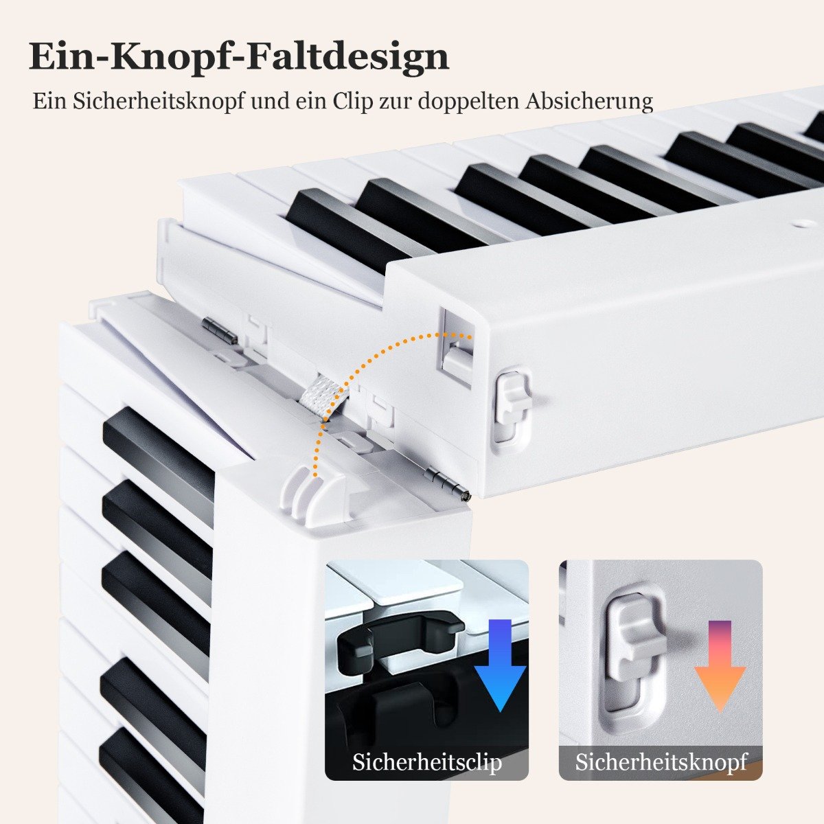 Praktiškas ir nešiojamas sulankstomas pianinas, sukurtas tiek pradedantiesiems, tiek pažengusiems muzikantams. Jo 88 pusiau svertiniai klavišai su reguliuojamu pasipriešinimu suteikia pojūtį, artimą tikram fortepijonui, o integruoti mokymosi režimai padeda greitai tobulėti.