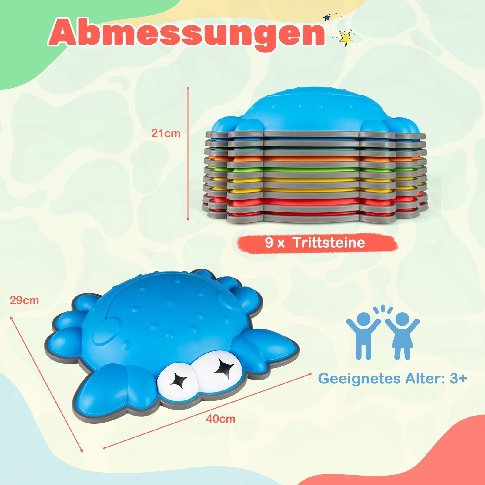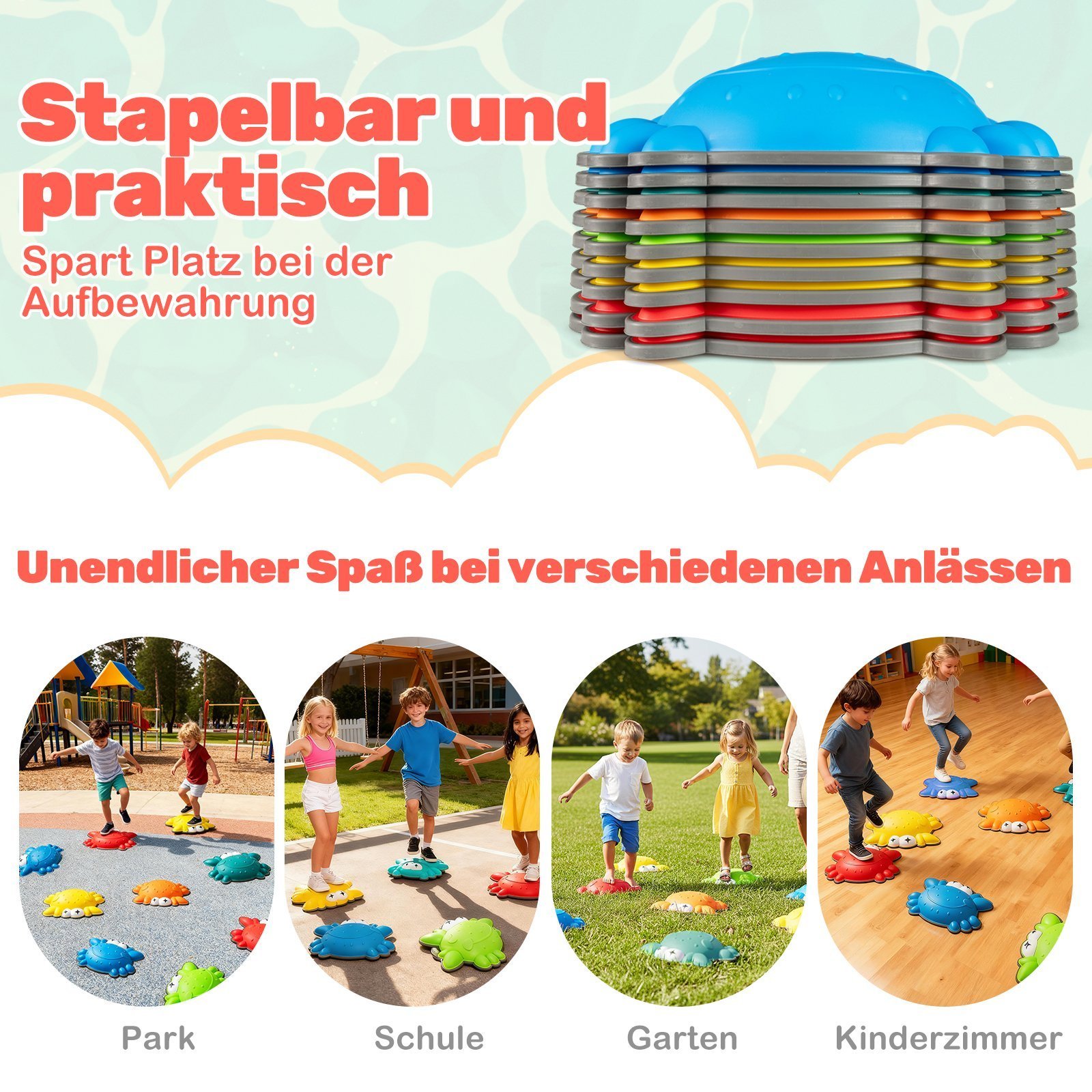 9 dalių neslystančių balansavimo akmenų rinkinys vaikams (Spalvotas)