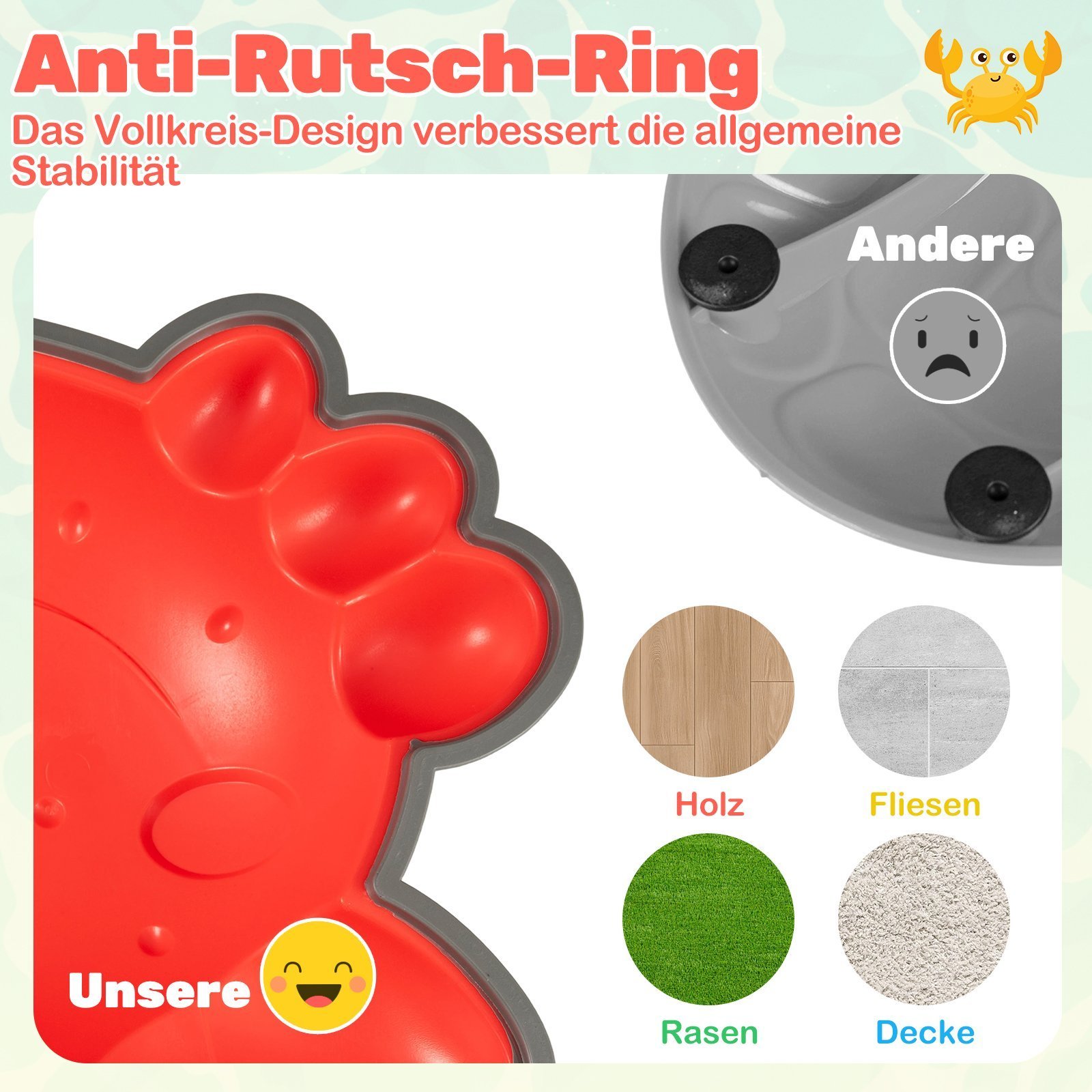 - Saugus, neslystantis paviršius su specialia tekstūra ir dugno padeliais užtikrina maksimalų stabilumą.