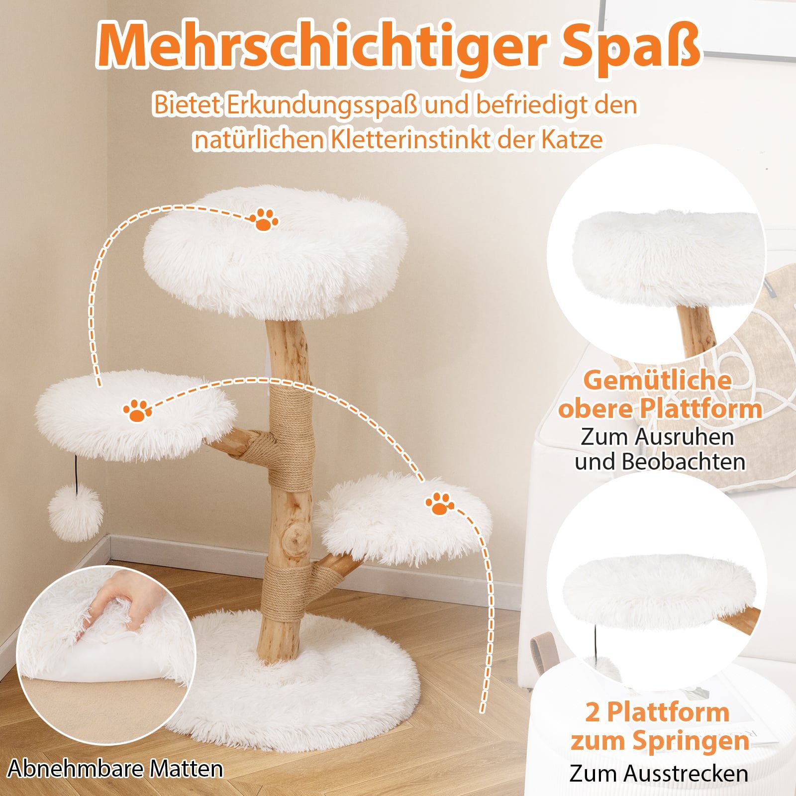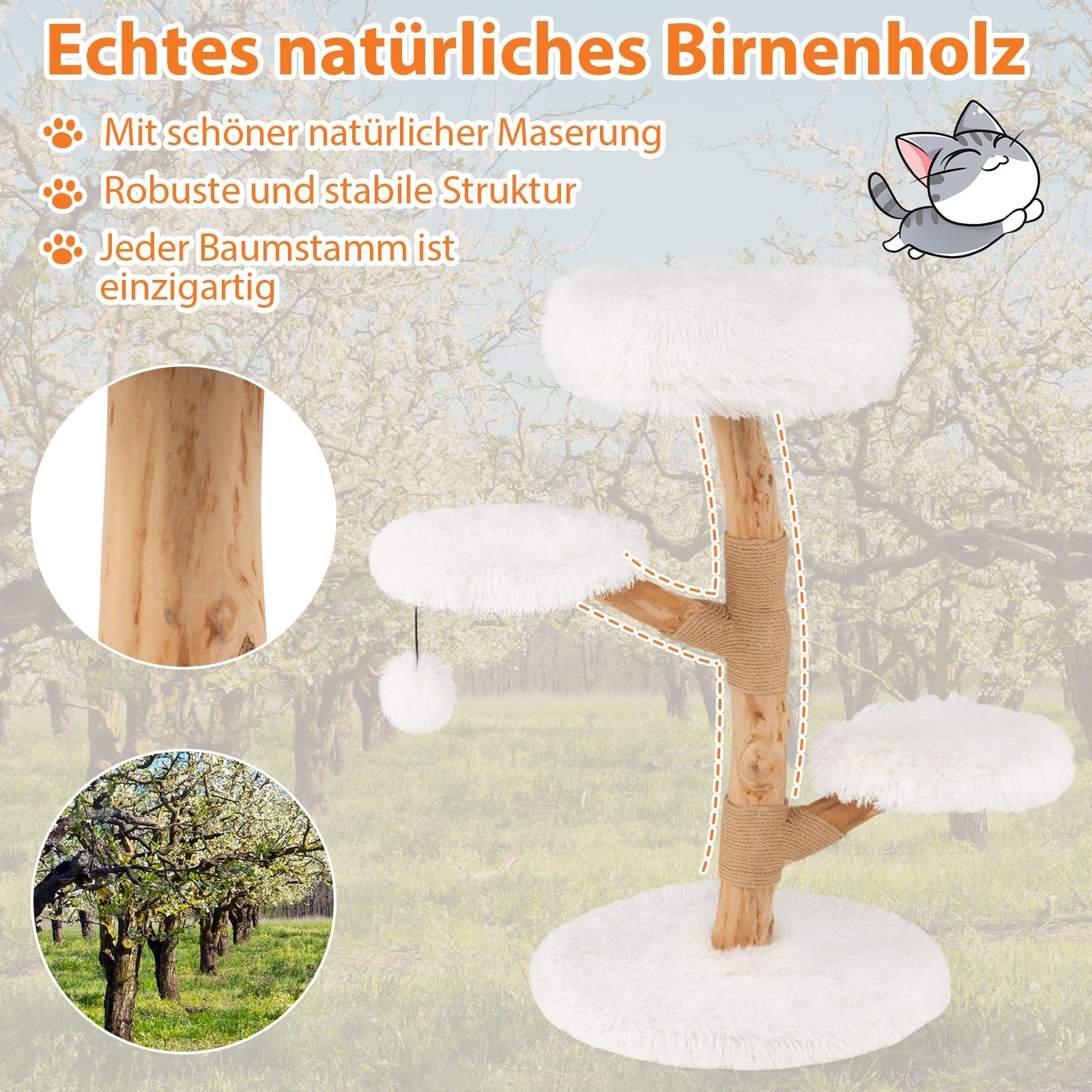 Palepinkite savo katę prabangia draskykle, pagaminta iš tvirtos kriaušės medienos! Šis unikalus kačių bokštas ne tik pasižymi išskirtiniu tvirtumu ir natūraliu medienos raštu, bet ir suteikia daugiasluoksnę žaidimų erdvę, patenkinančią natūralų Jūsų augintinio laipiojimo instinktą. Minkštas, ilgaplaukis pliušinis audinys ir natūralaus džiuto stulpai užtikrina maksimalų komfortą ir begalines pramogas.
