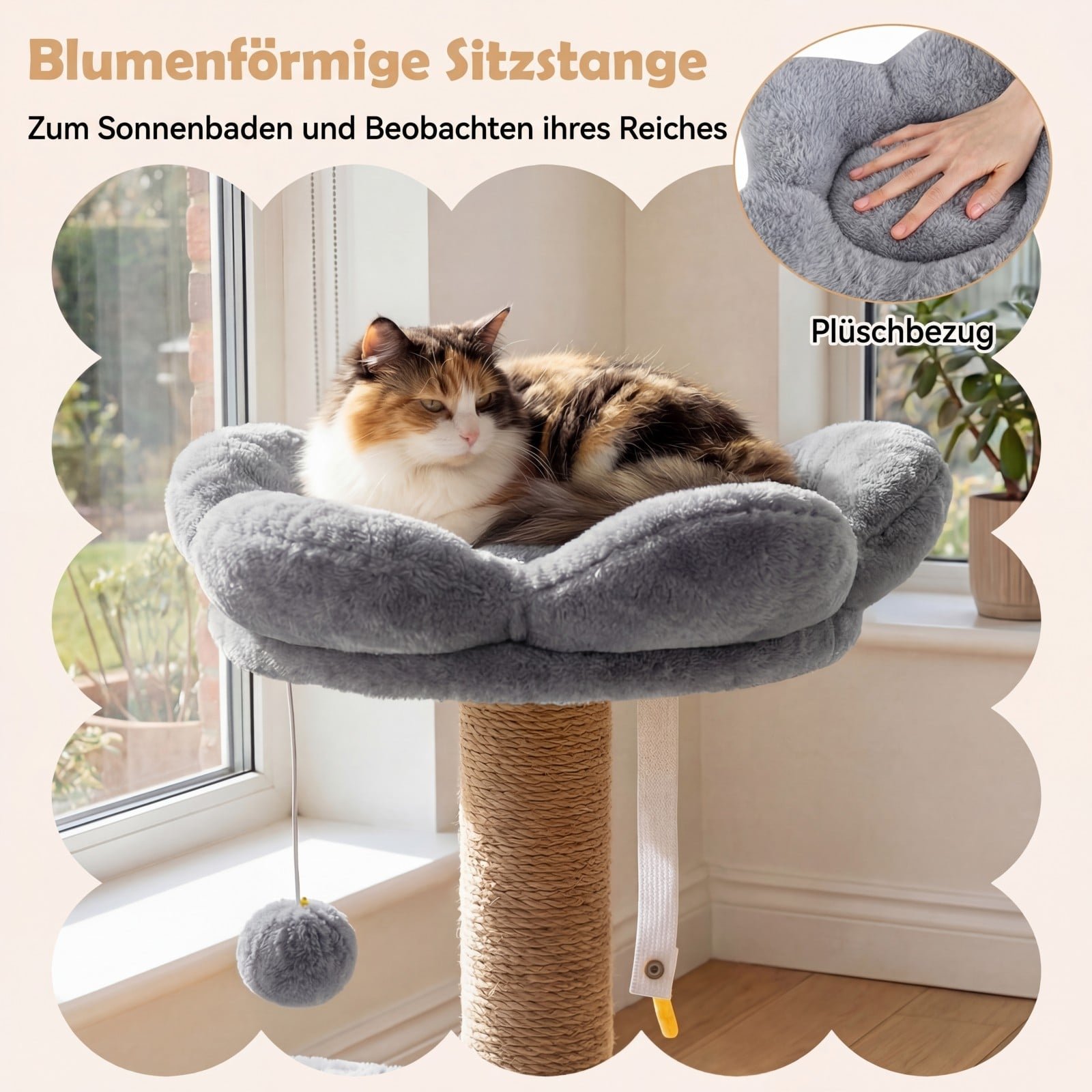 Padovanokite savo katei nuostabią pramogų ir poilsio erdvę su šia draskykle. Sukurta komfortui ir linksmybėms, ji siūlo paminkštintą gėlės formos platformą apžvalgai, jaukų namelį su šoniniu langu ir minkštą guolį. Stabilus dizainas su sustiprintu pagrindu ir apsauga nuo apvirtimo užtikrina saugumą žaidžiant ir laipiojant.