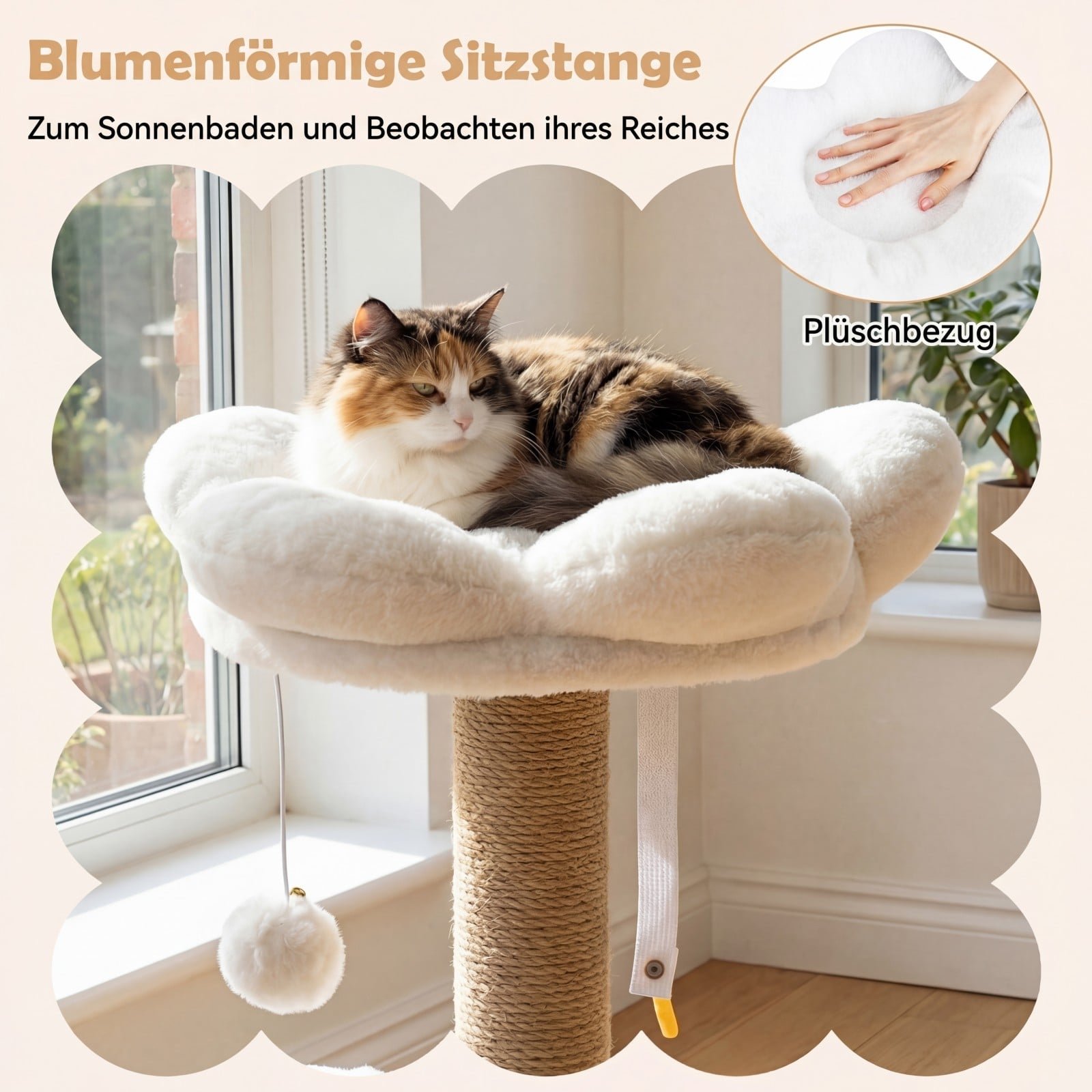 96 cm daugiaaukštė kačių draskyklė su urvu ir gėlės formos guoliu (Smėlio)