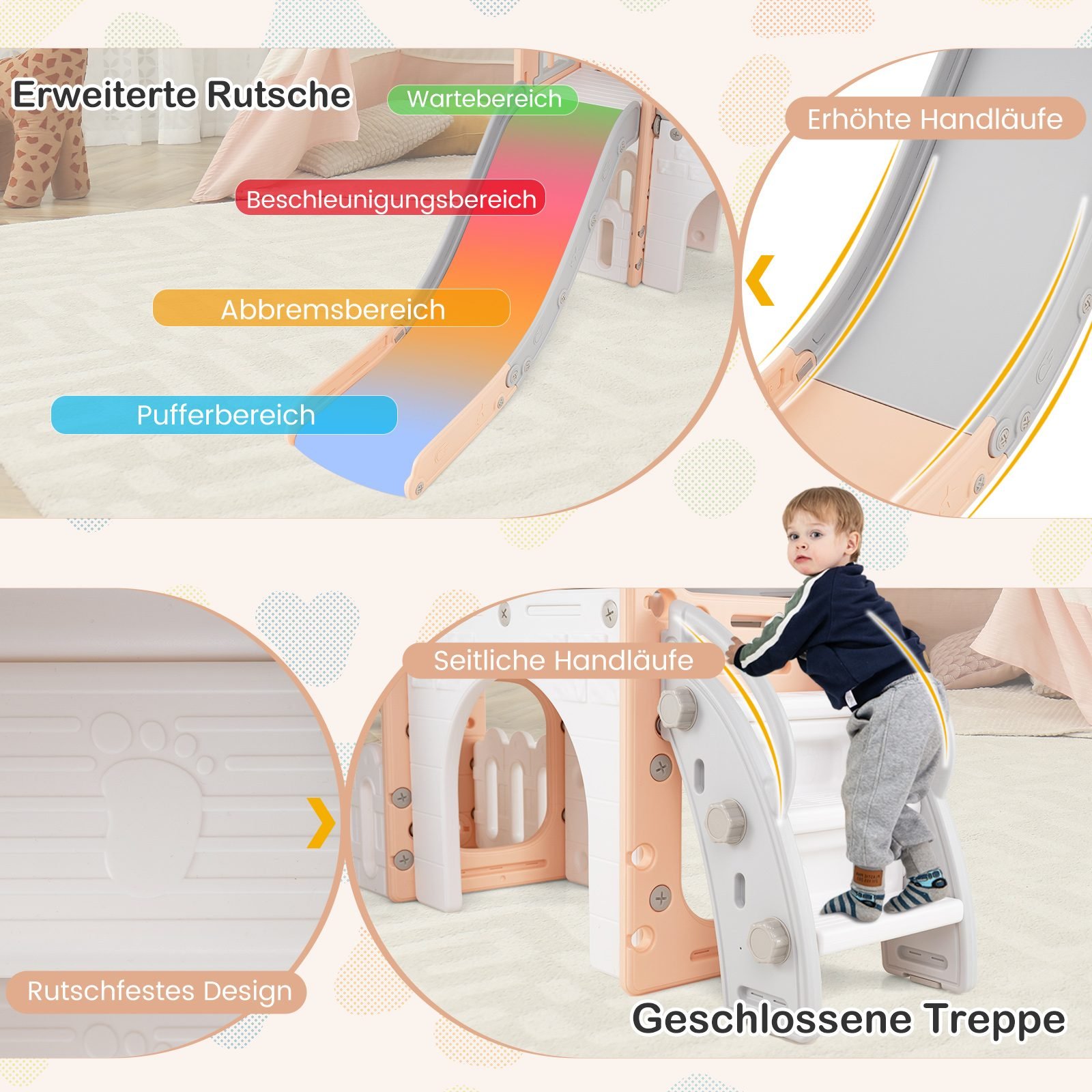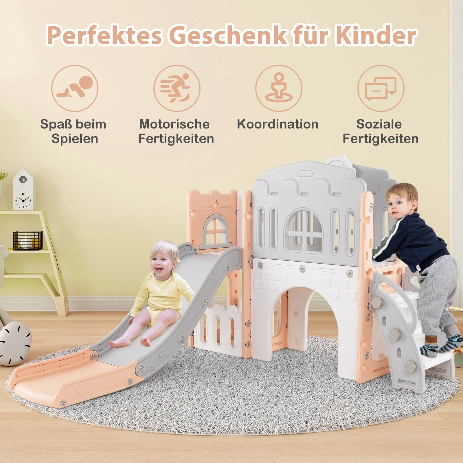 Suteikite vaikams daugybę pramogų valandų ir skatinkite fizinę veiklą su šiuo universaliu 9-in-1 žaidimų aikštelės rinkiniu! Pagamintas iš aukštos kokybės ir saugaus HDPE plastiko, jis puikiai tiks tiek jūsų namuose, tiek žaidimų kambaryje ar vaikų darželyje.
