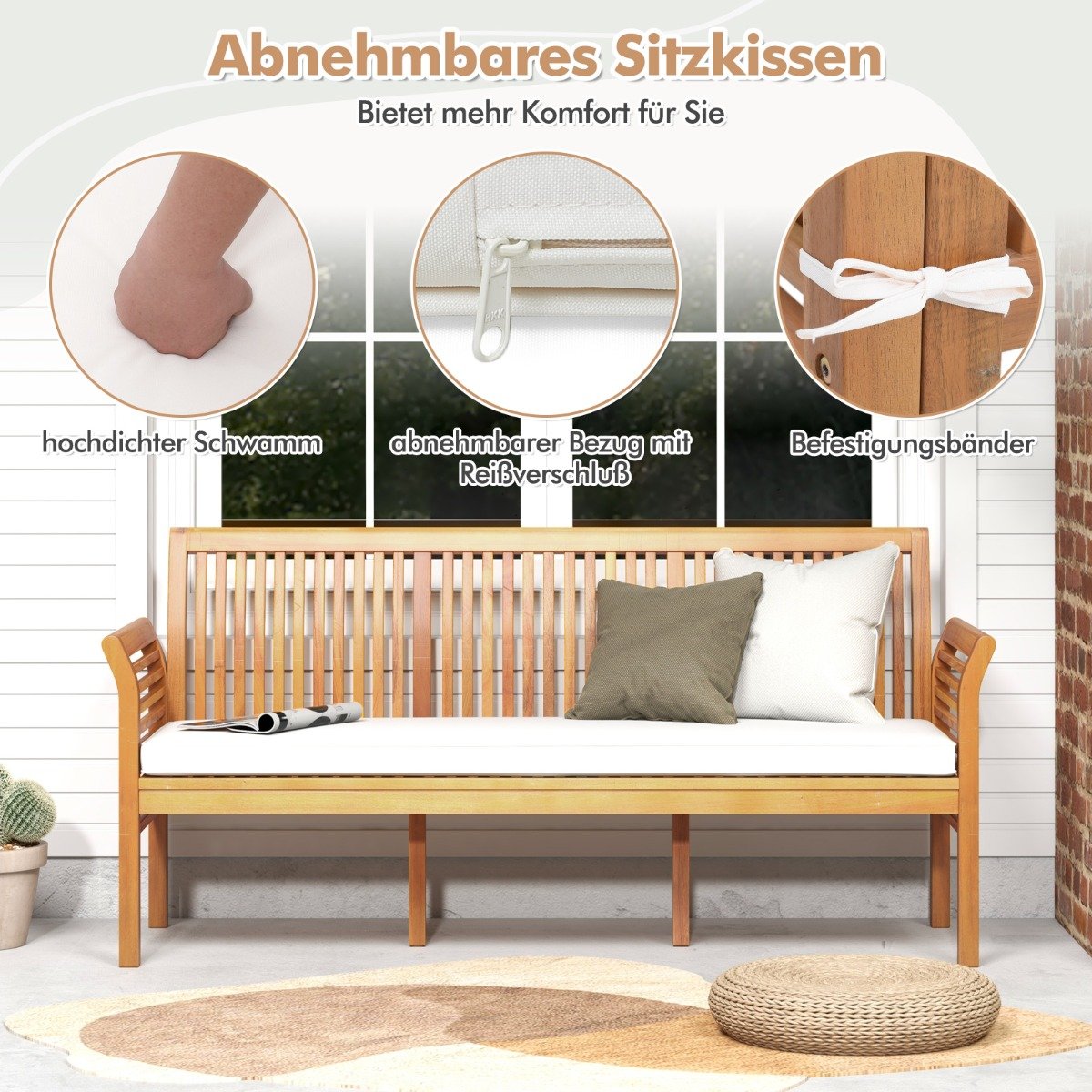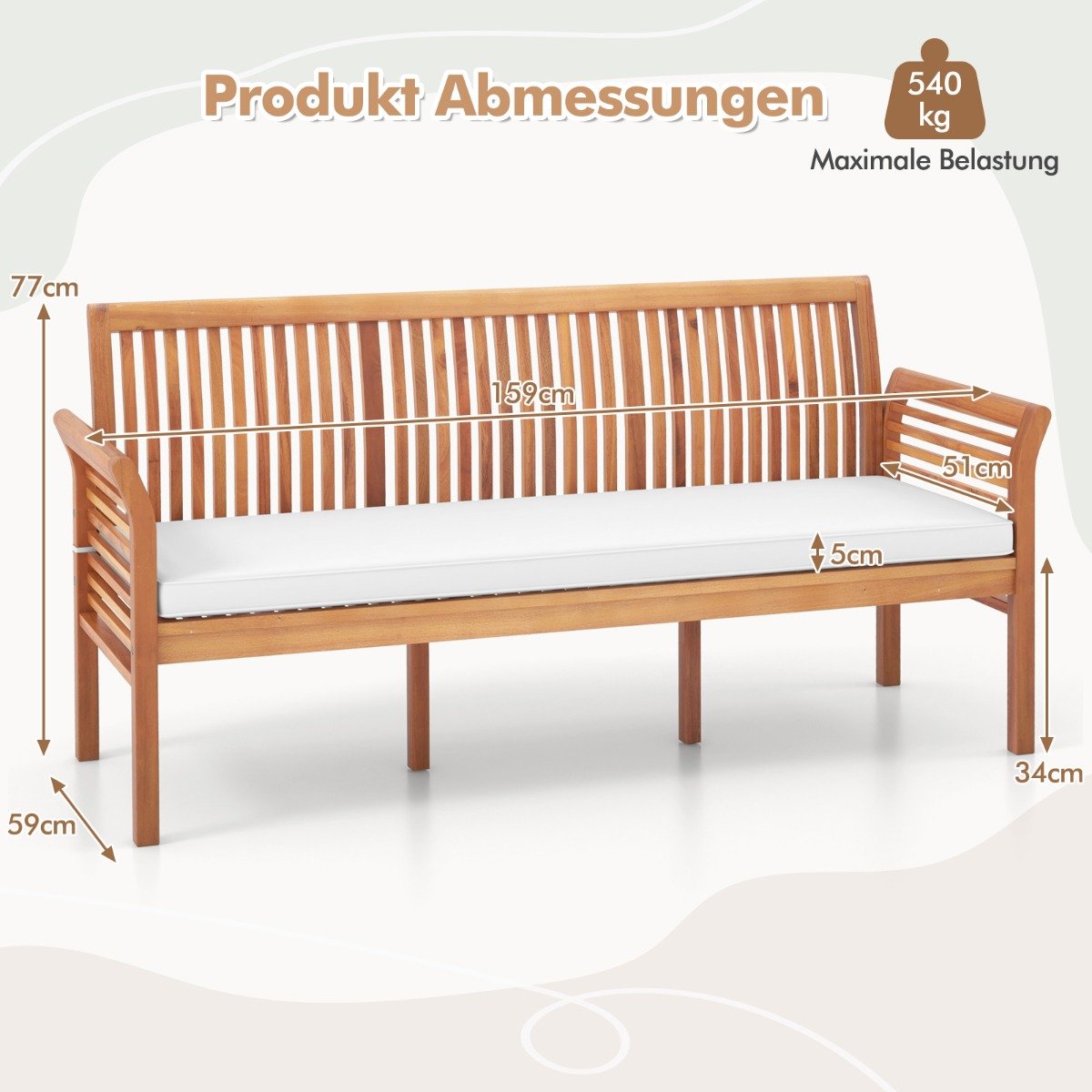 Akacijos medienos lauko suolas su paminkštinimu (Balta)