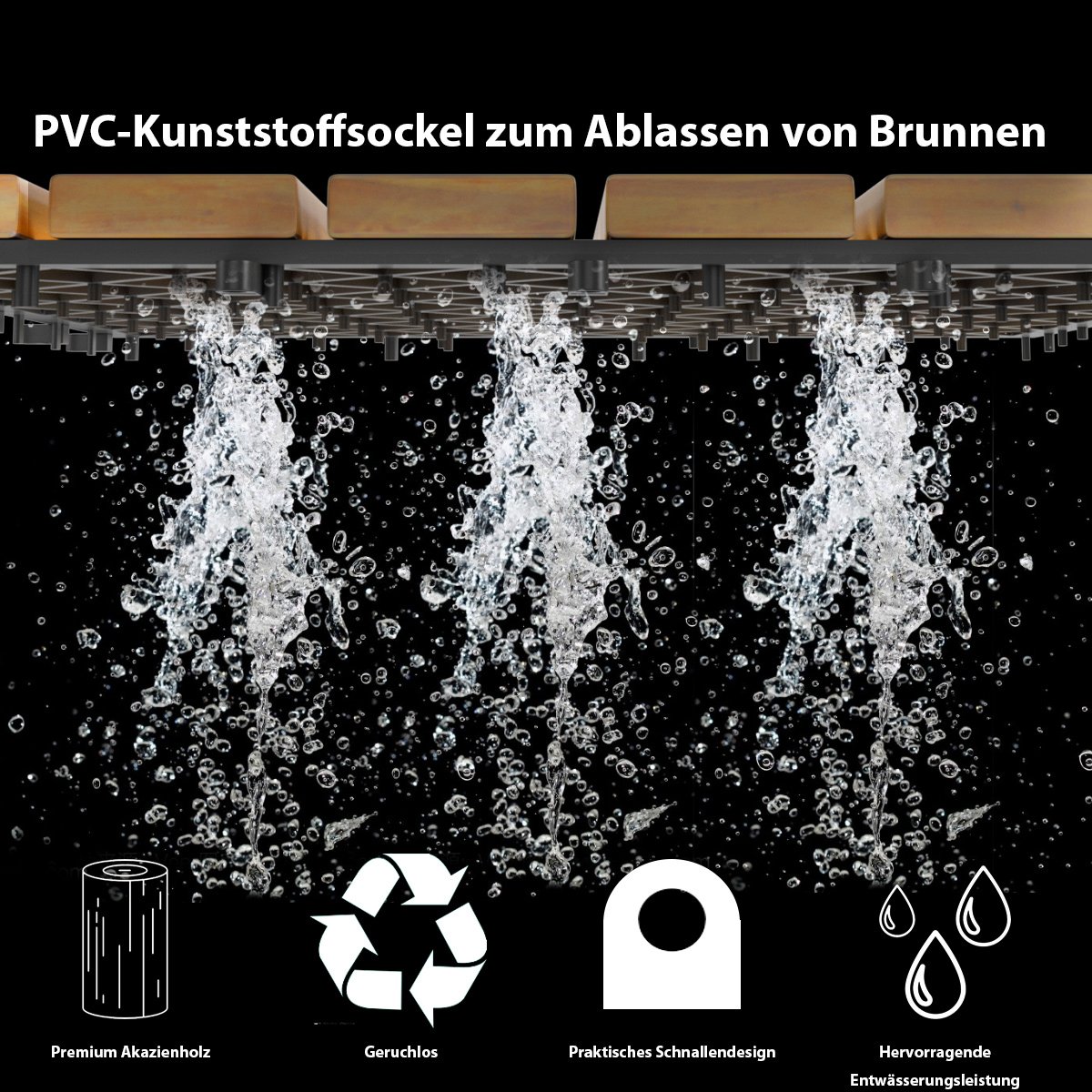 - Medžiaga: Tvirta akacijos mediena + PVC plastiko pagrindas