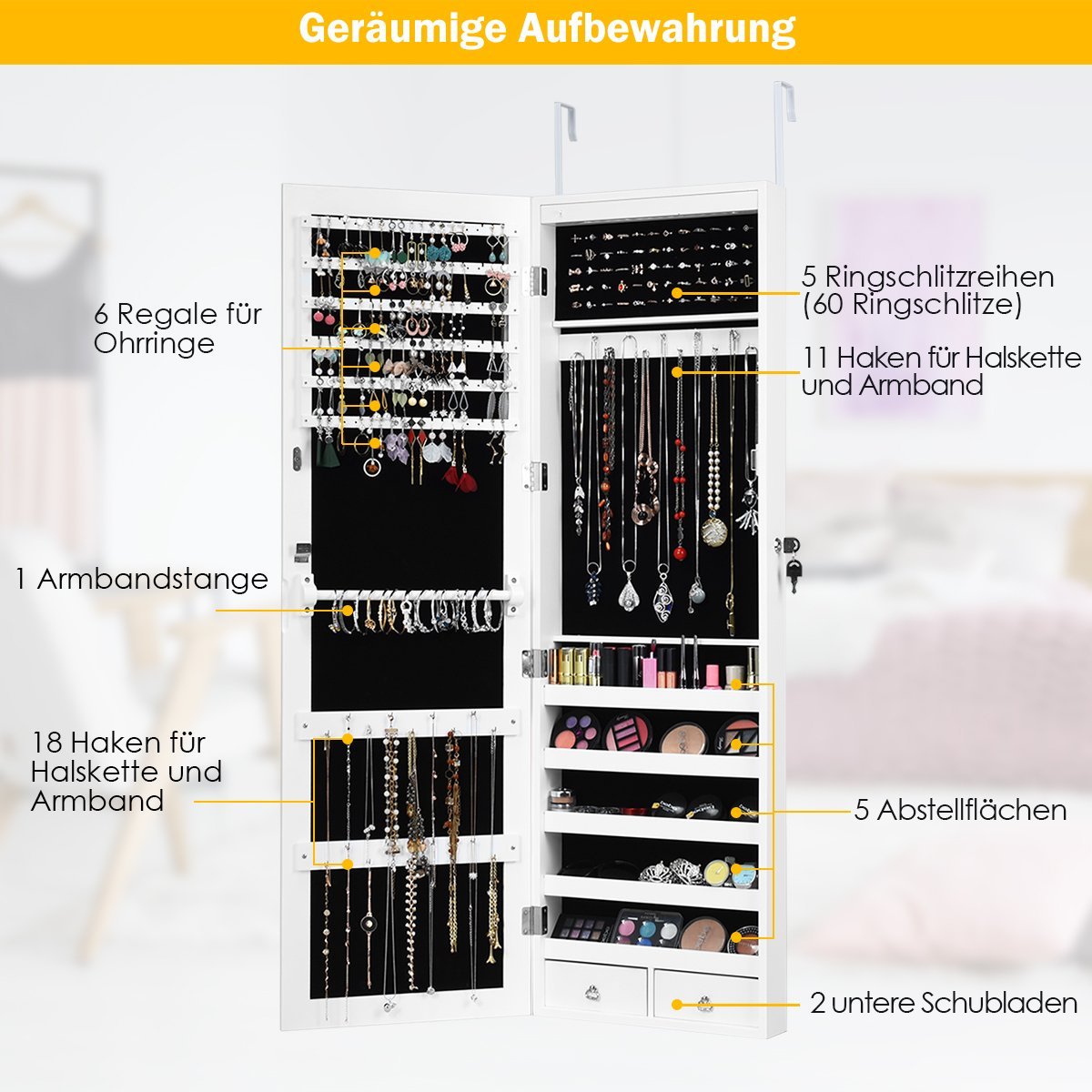 Ši aukštos kokybės aksesuarų spintelė – puikus sprendimas tvarkingai laikyti visus jūsų papuošalus ir kosmetiką. Dėl kompaktiško dizaino ją galima lengvai pakabinti ant sienos arba durų, taip sutaupant brangią vietą.