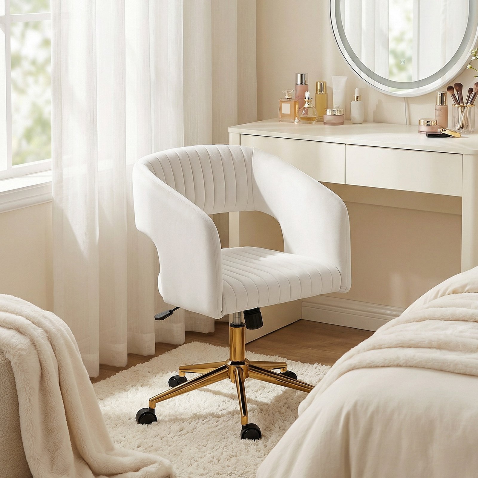 Mėgaukitės aukštos kokybės biuro kėdės komfortu su švelniu aksominiu audiniu ir didelio tankio putplasčiu, užtikrinančiu jaukią sėdėjimo patirtį. Elegantiškas horizontalaus dygsniavimo raštas suteikia rafinuotumo, o pasvirimo funkcija padeda atsipalaiduoti po darbo. Dėl 360° besisukančios sėdynės ir sklandžiai riedančių ratukų, šią kėdę lengva perkelti, ji apjungia patogumą ir funkcionalumą, kad praskaidrintų jūsų darbo dieną.