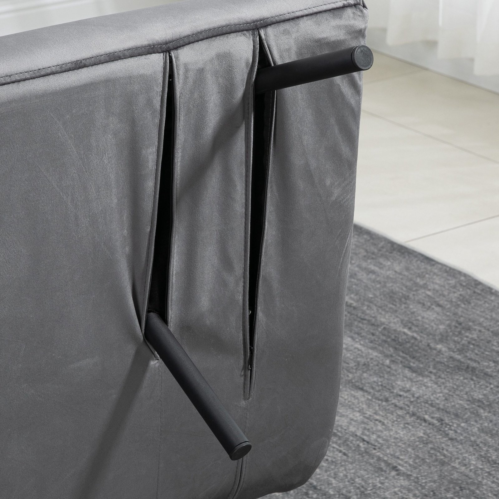 Aksominė sofa-lova su 5 padėčių reguliuojamu atlošu