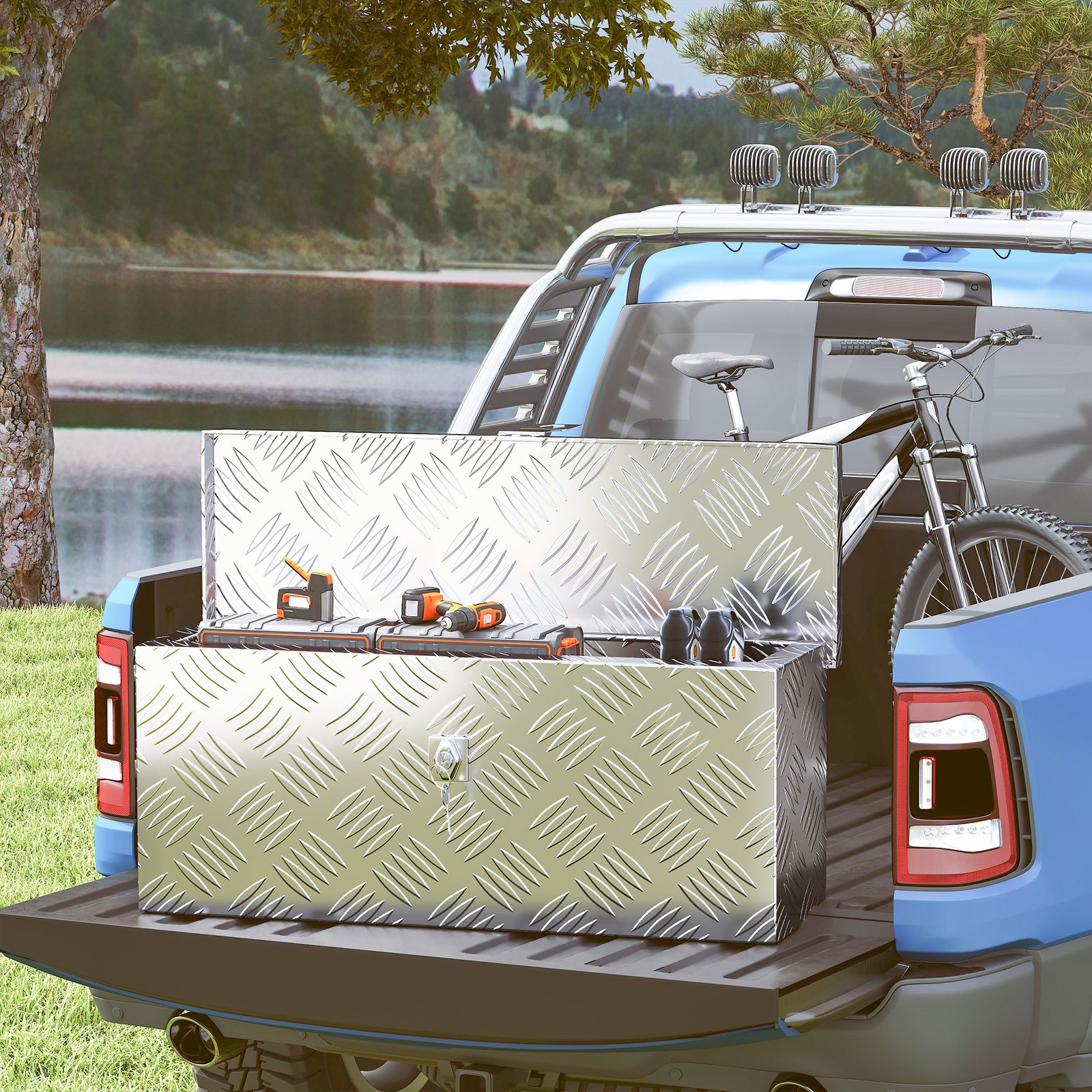 Ši aliuminio įrankių dėžė užtikrina patikimą darbo įrankių ir kitų daiktų laikymą. Nepaisant tvirtos konstrukcijos, tuščia įrankių dėžė sveria tik 2 kg. Idealiai tinka saugiam įrankių ir elektros priedų laikymui, užrakinama raktu.