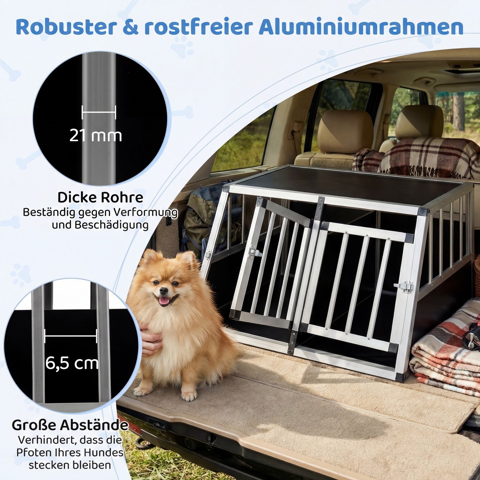 - Išimama pertvara lanksčiam panaudojimui – idealu vienam didesniam ar dviem mažiems šunims.