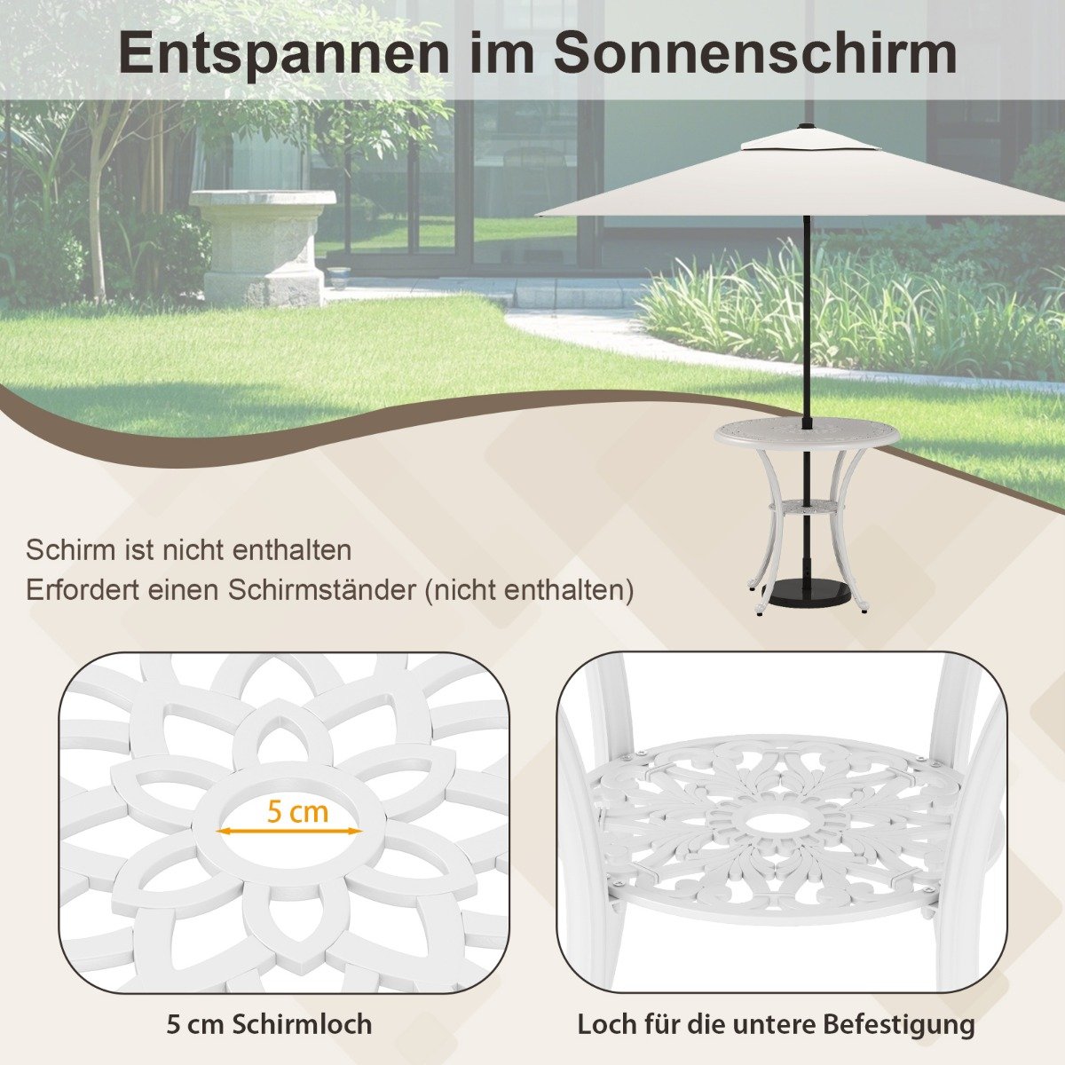 - Praktiška skylė skėčiui (skėtis į komplektą neįeina).