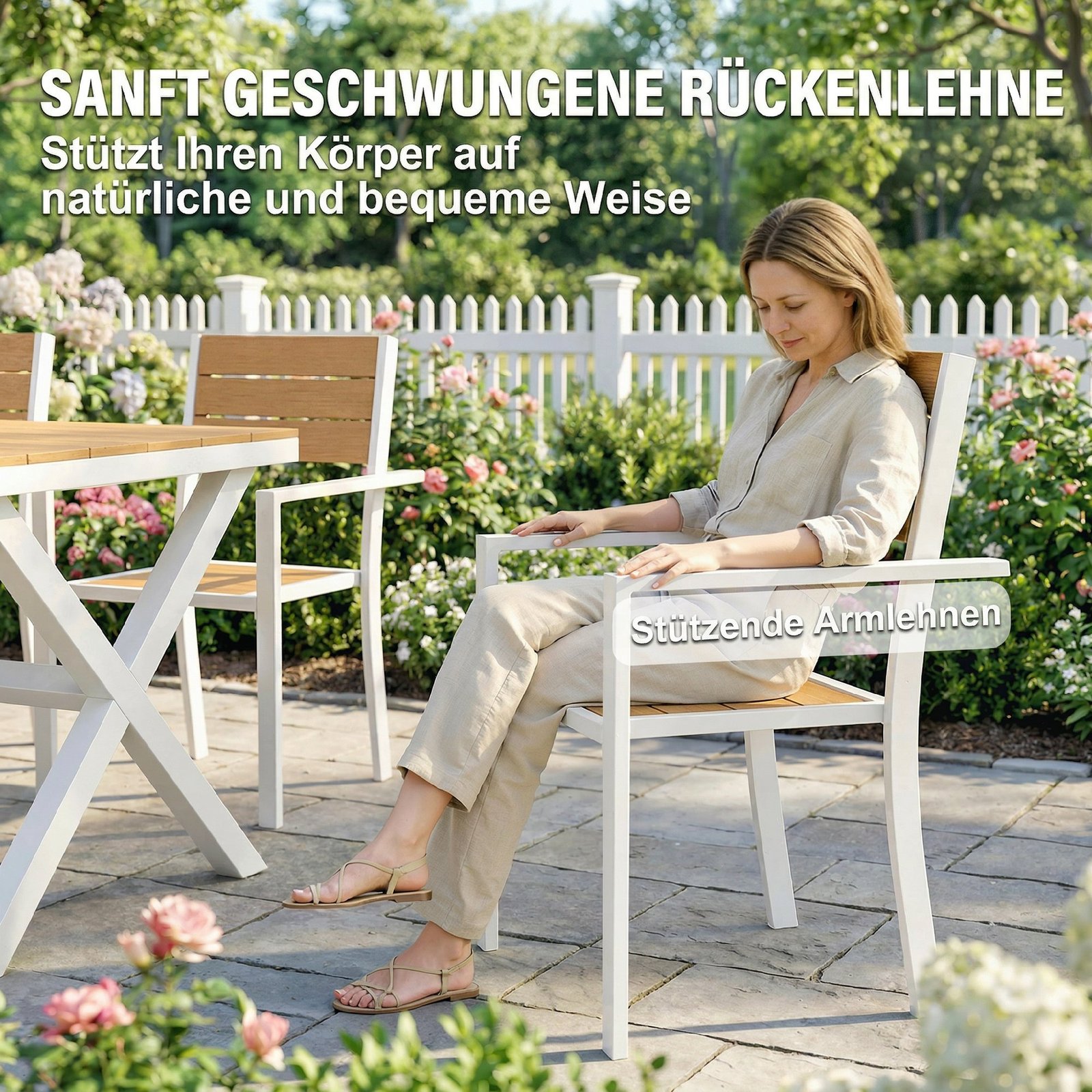 ✔ Lauko stalas ir kėdės su dirbtinės medienos lentelėmis greitam džiūvimui ir lengvai priežiūrai