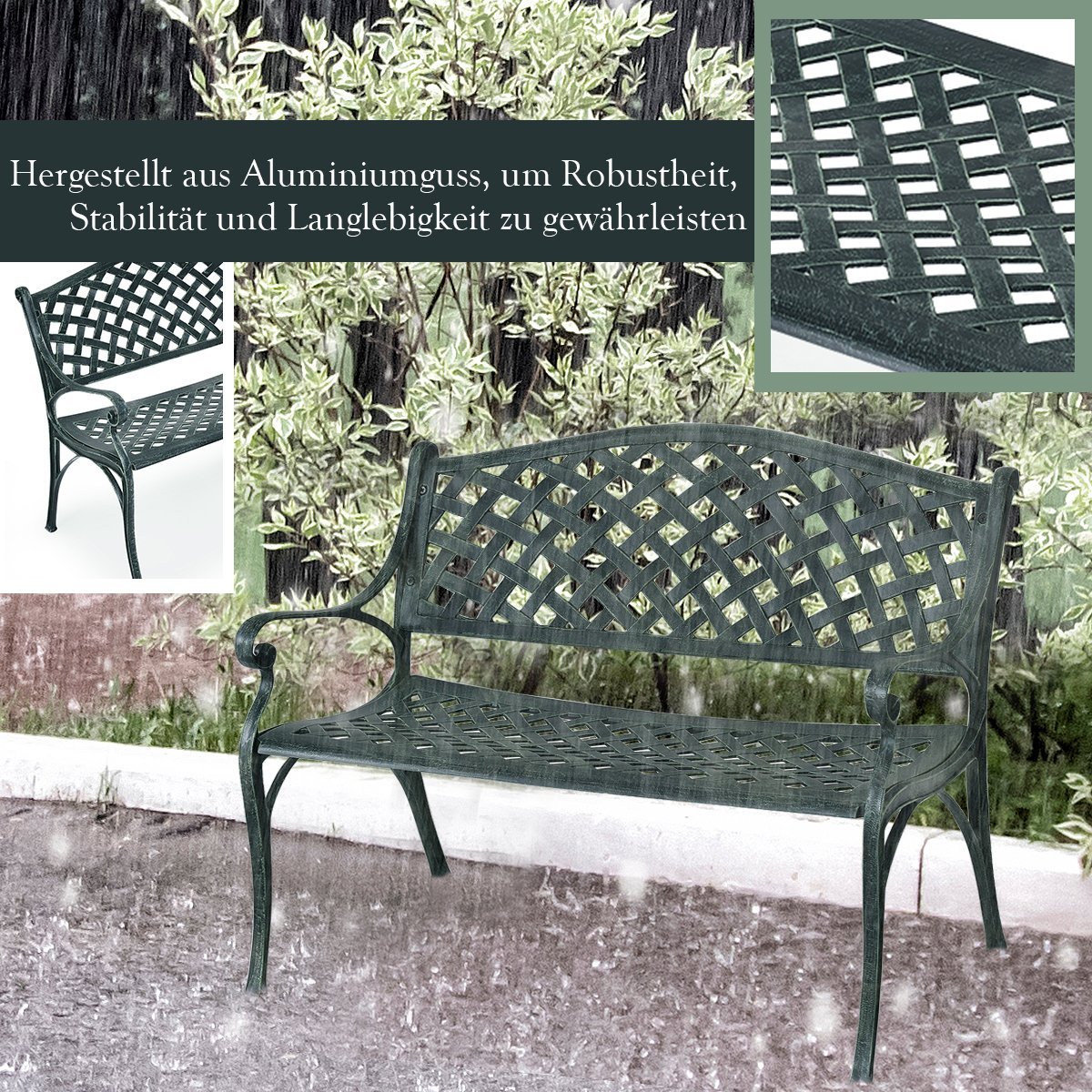 Atsipalaiduokite ir mėgaukitės saulėta popiete skaitydami knygą ar tiesiog ilsėdamiesi ant šio stilingo aliuminio sodo suolo. Jame patogiai tilps 2-3 žmonės, o elegantiškas dizainas su grotelių raštu taps puikia jūsų sodo, terasos ar verandos puošmena.