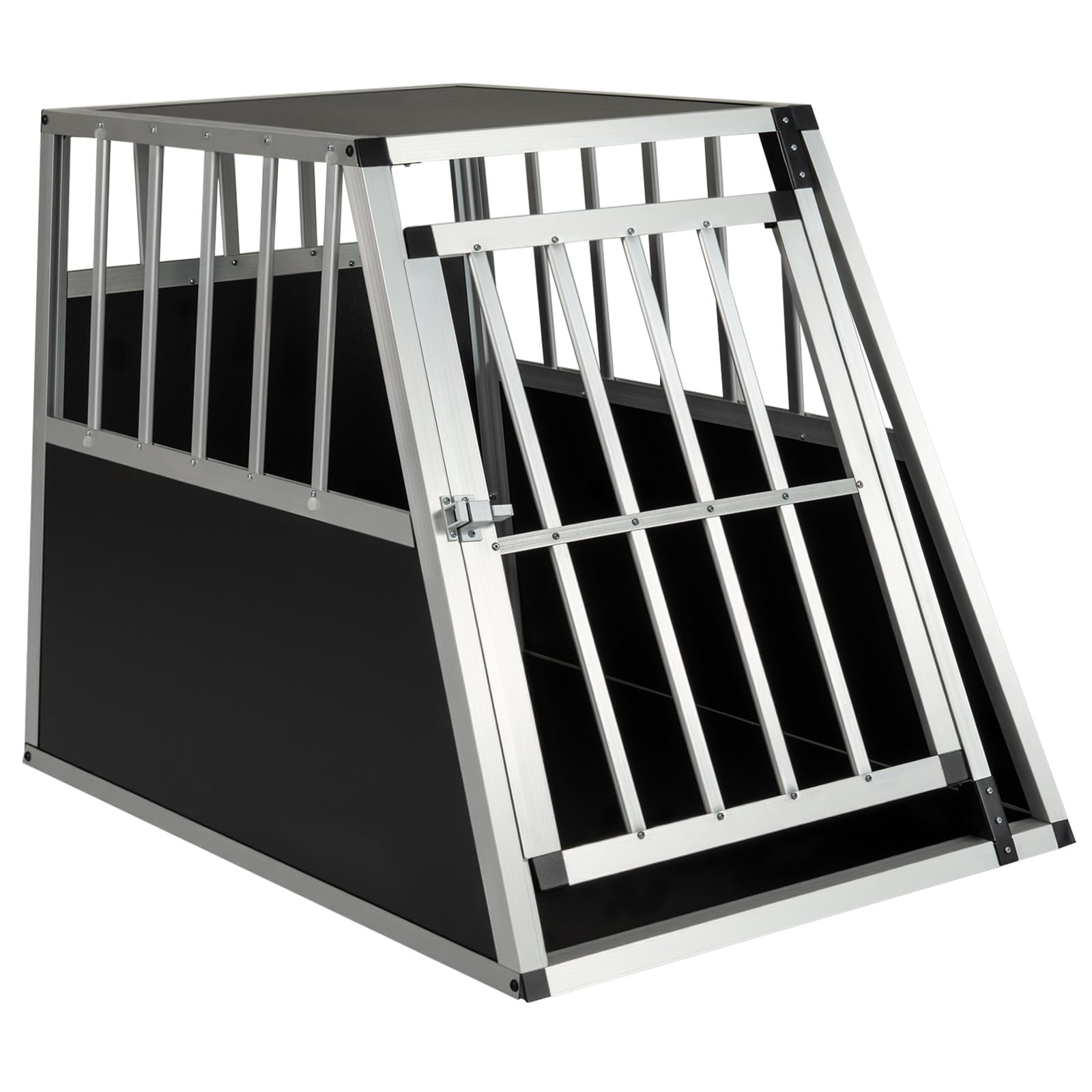 Aliuminio transportavimo narvas šunims su užrakinamomis durelėmis (Juoda ir sidabrinė)