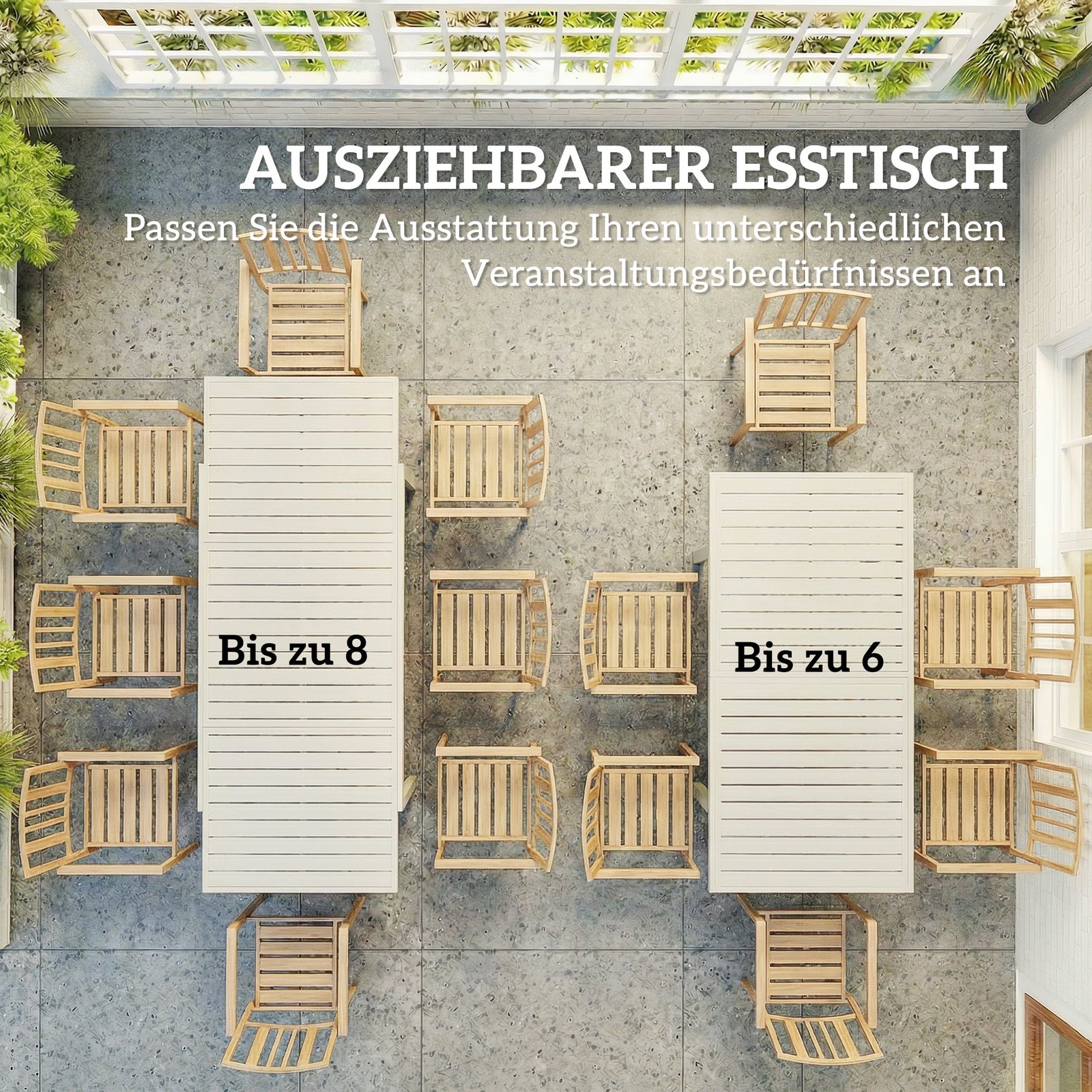 ✔ Elegantiškas, baltas dizainas papildo bet kurią sodo ar terasos erdvę ir paverčia ištraukiamą sodo stalą tikru traukos objektu.