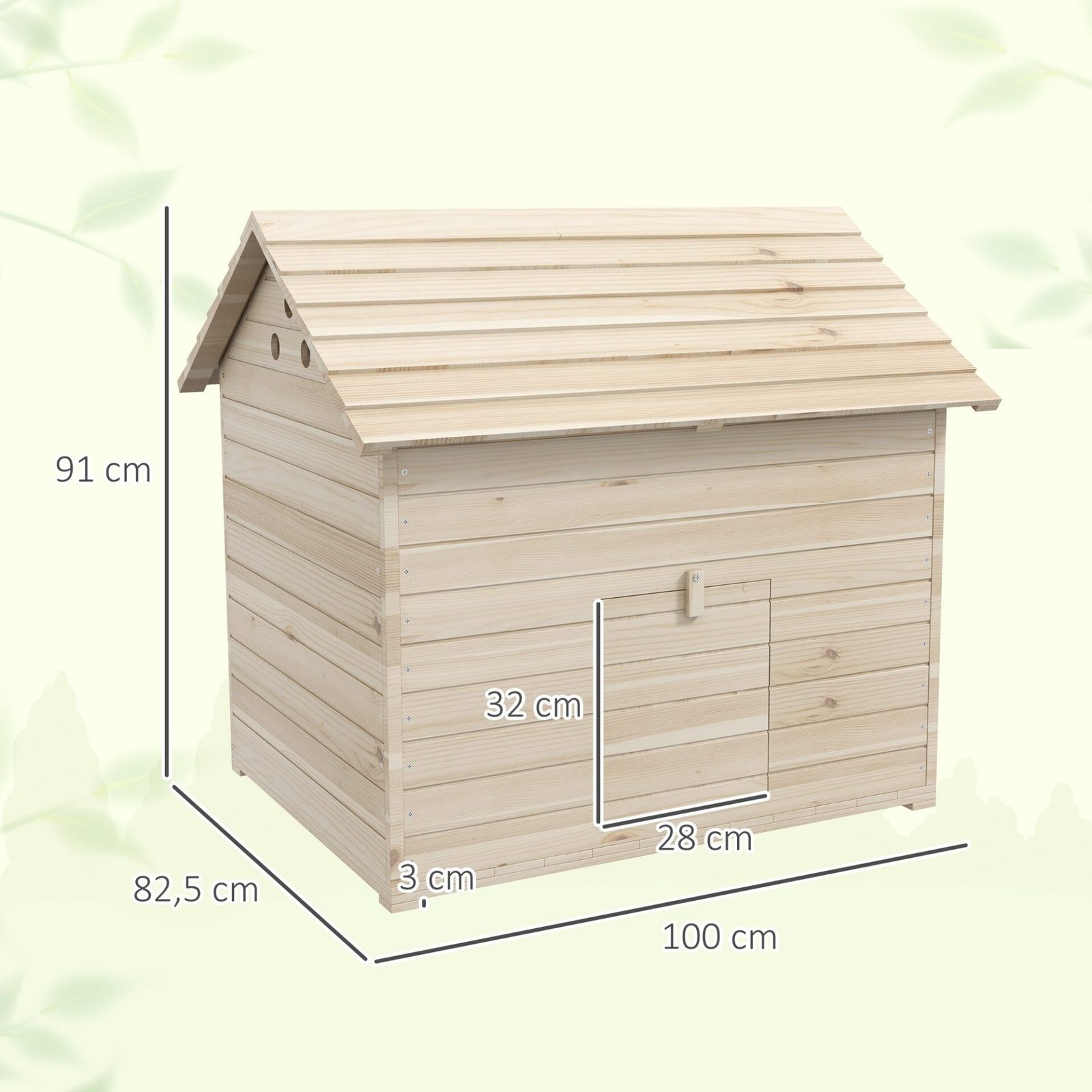 ✔ Dėl nuožulnaus stogo ir eglės medienos medžiagos šis paukštynas tinka naudoti lauke