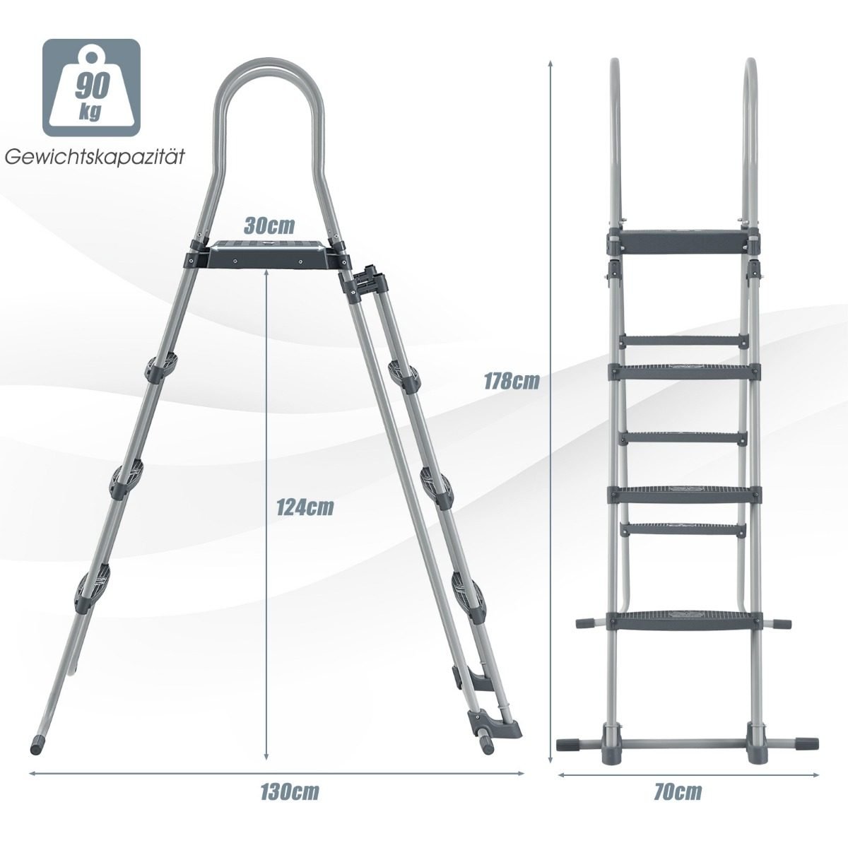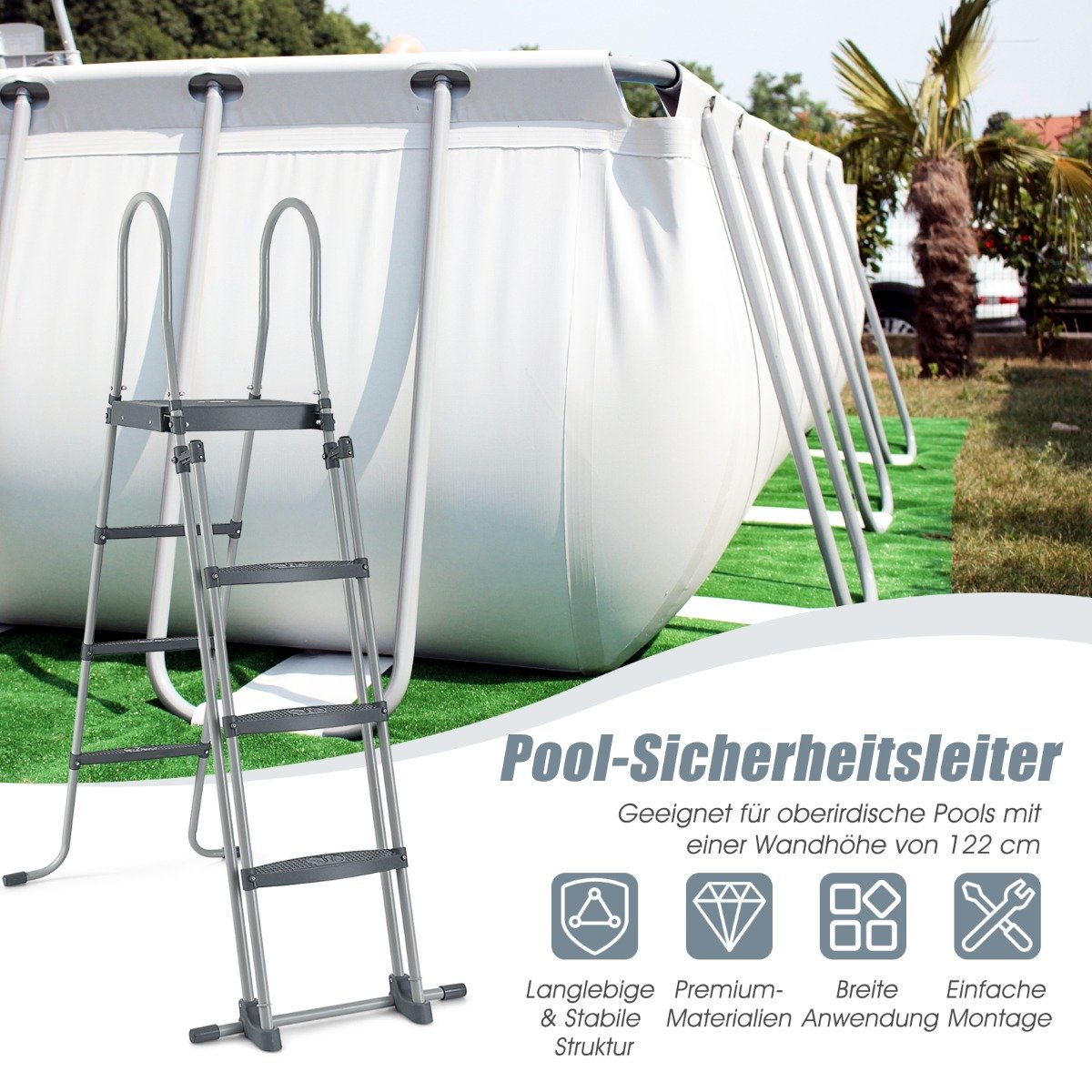 Antžeminio baseino kopėčios su nuimamu pakopų tvirtinimu (Sidabrinė)