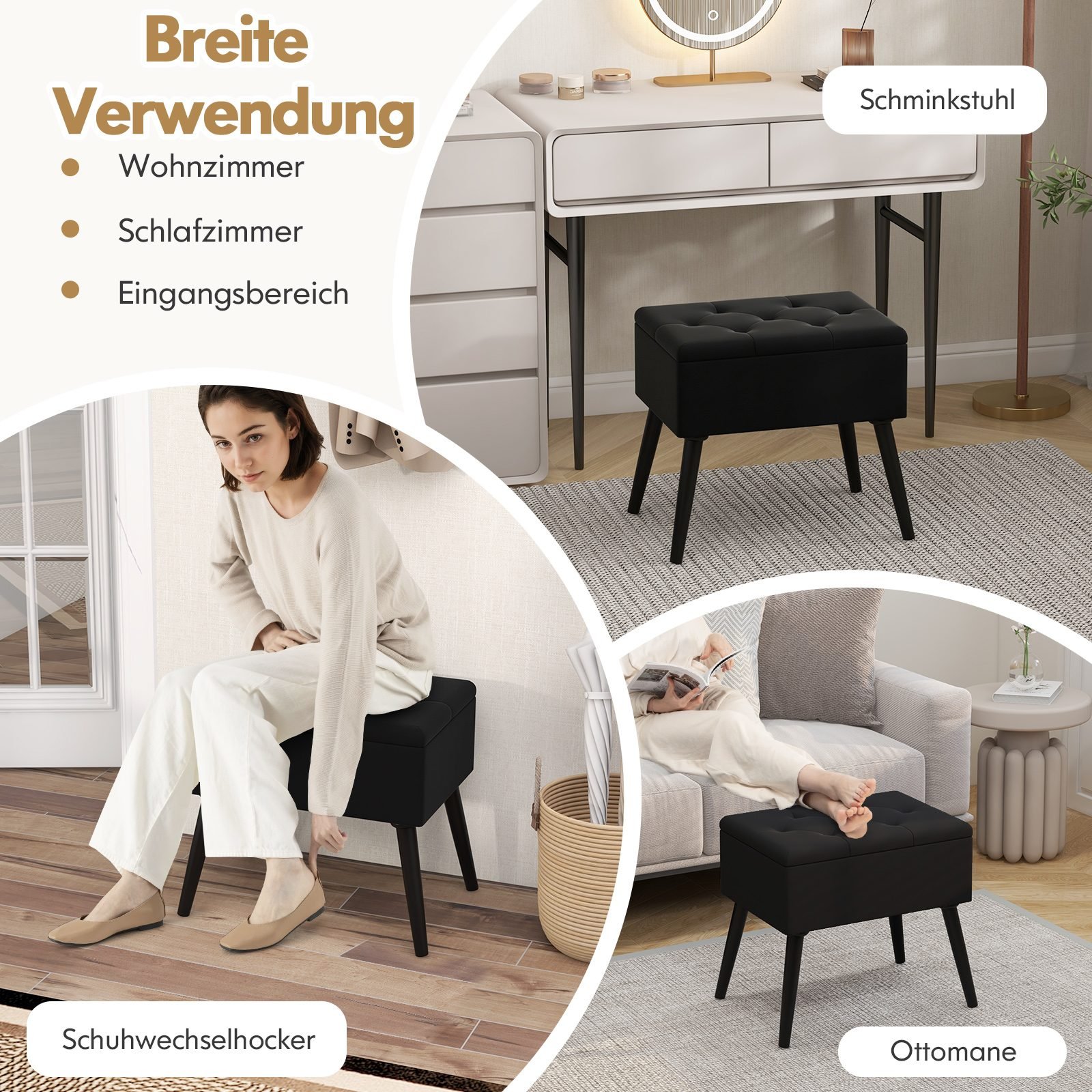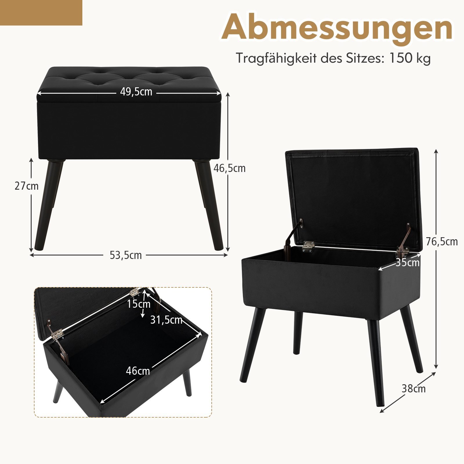 Apdarytas pufas su daiktadėže juodas (Juoda)