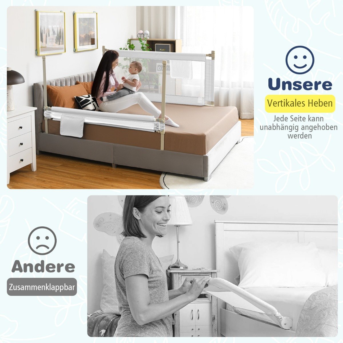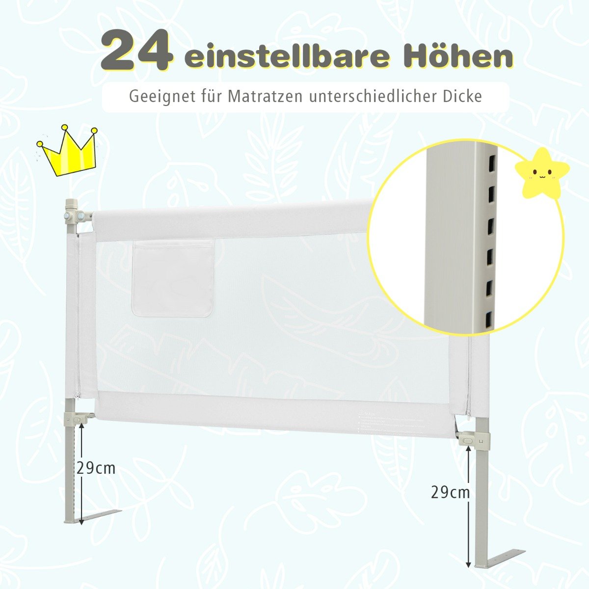 Nerimaujate, kad jūsų mažylis žaisdamas ar miegodamas lovoje gali susižeisti? Ši lovelės tvorelė – puikus sprendimas, užtikrinantis jūsų vaiko saugumą ir suteikiantis jums ramybę. Tai nepakeičiamas pagalbininkas jūsų vaiko vaikystėje.