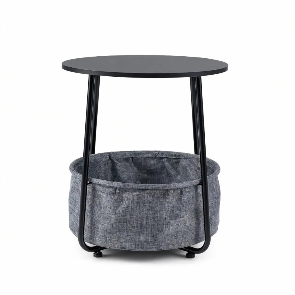 Apskritas šoninis staliukas su išimamu laikymo krepšiu (Juoda)