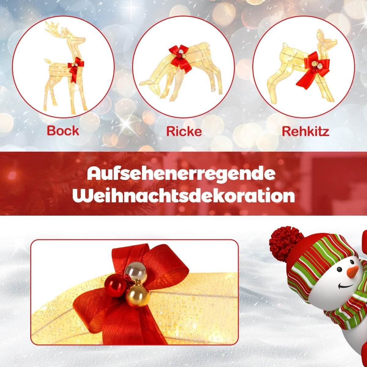 • Šventinė 3 elnių šeimos kompozicija.