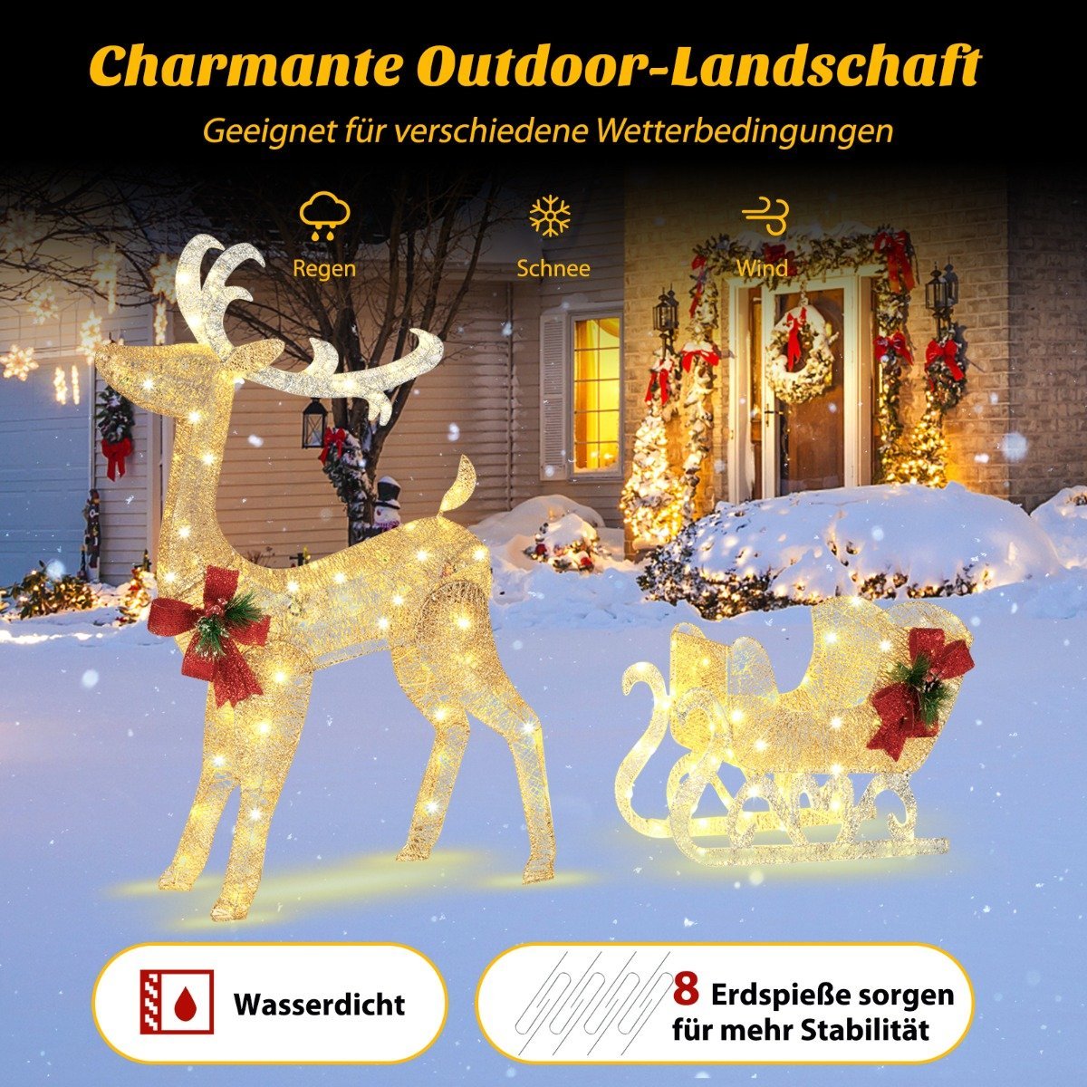 - 1 x Apšviestas elnias su kalėdinėmis rogėmis