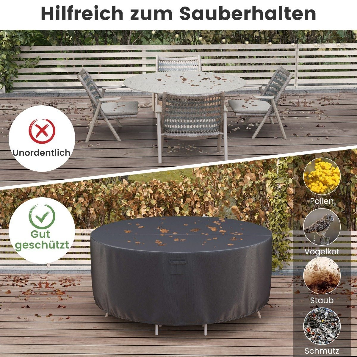 Sukurtas maksimaliai apsaugoti jūsų lauko baldus, šis universalus apvalus uždangalas puikiai tiks stalams ir kėdžių komplektams, kurių skersmuo iki 183 cm. Pagamintas iš aukštos kokybės PU dengto poliesterio audinio, jis pasižymi ilgaamžiškumu, atsparumu plyšimui ir gebėjimu atlaikyti sunkiausias oro sąlygas ištisus metus – nuo lietaus ir sniego iki saulės ir vėjo.