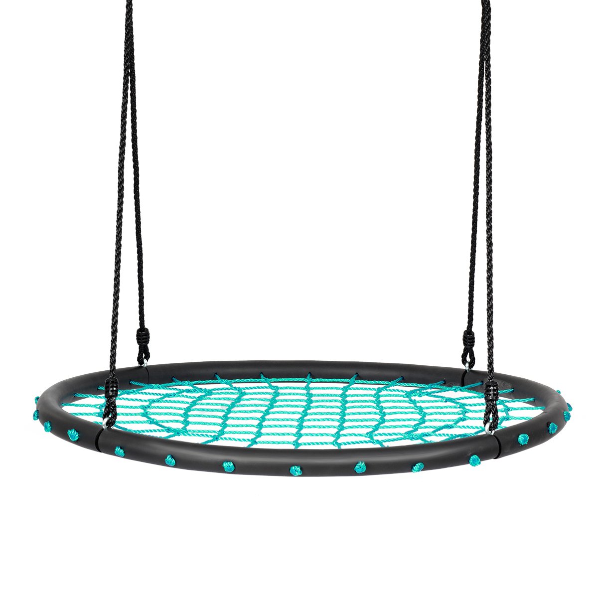 Ši apvali, lizdo formos sūpynė suteiks daug džiaugsmo visai šeimai! Tvirto plieninio rėmo ir storių lynų dėka ji taps mėgstamiausia vaikų žaidimų vieta valandų valandoms.