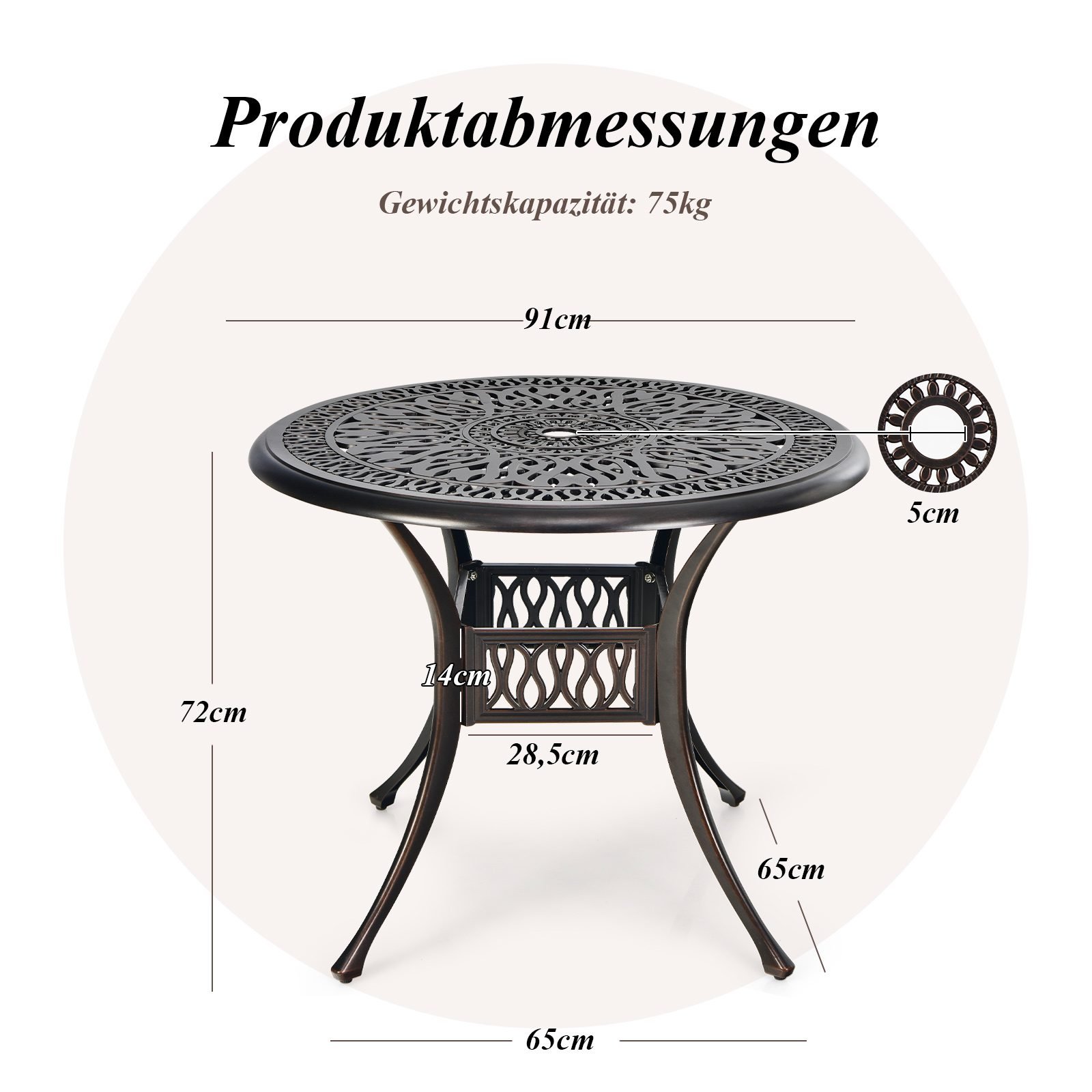 Apvalus aliuminio sodo stalas su skėčio anga 90 cm (Vario raudona)
