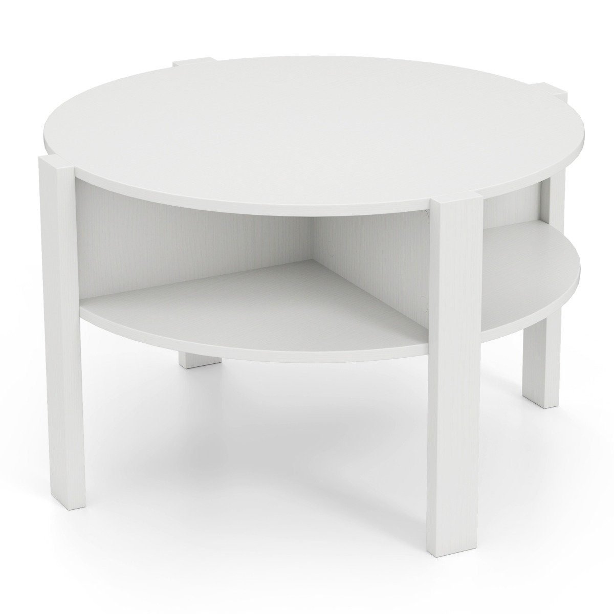 Apvalus kavos staliukas su keturiomis lentynomis (Balta)