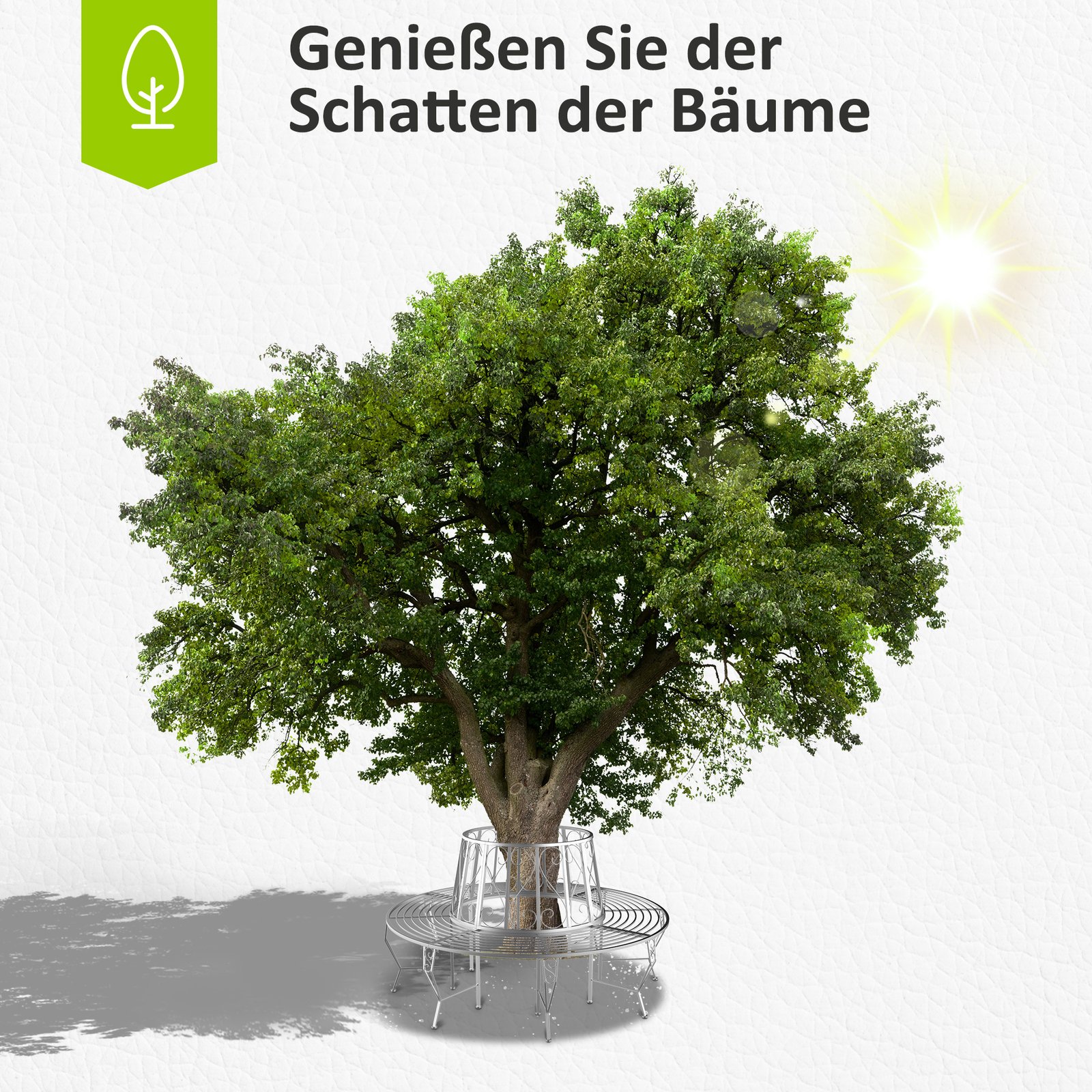 Kaip malonu sėdėti po medžiu pavėsyje ir jaukiai praleisti laisvalaikį, geriant kavą ar skaitant knygą! Su šiuo 360° metaliniu apvaliu suolu, apjuosiančiu medį, turėsite ypač malonią pavėsingą vietą savo sode. Šis suolas turi didelę, patogią sėdimąją dalį ir tvirtas, skoningai suprojektuotas atramines kojas. Dėl savo praktiškumo ir stilingo dizaino, šis dekoratyvinis metalinis suolas puikiai tiks jūsų sode!