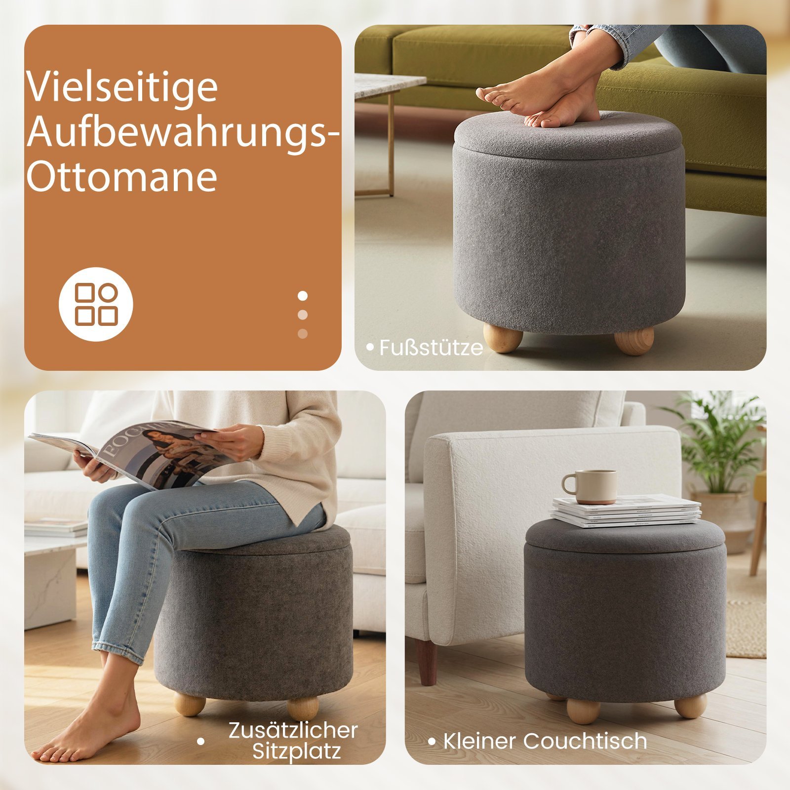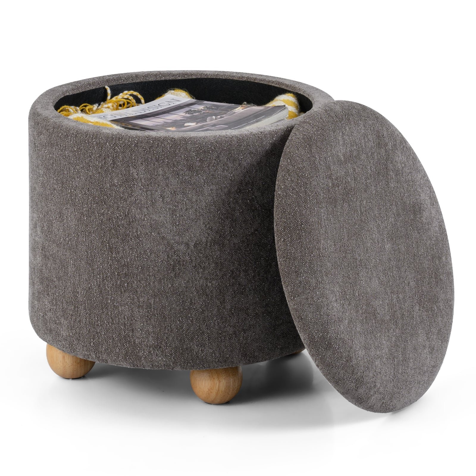 Apvalus pufas su daiktadėže ir medinėmis kojelėmis (Pilka)