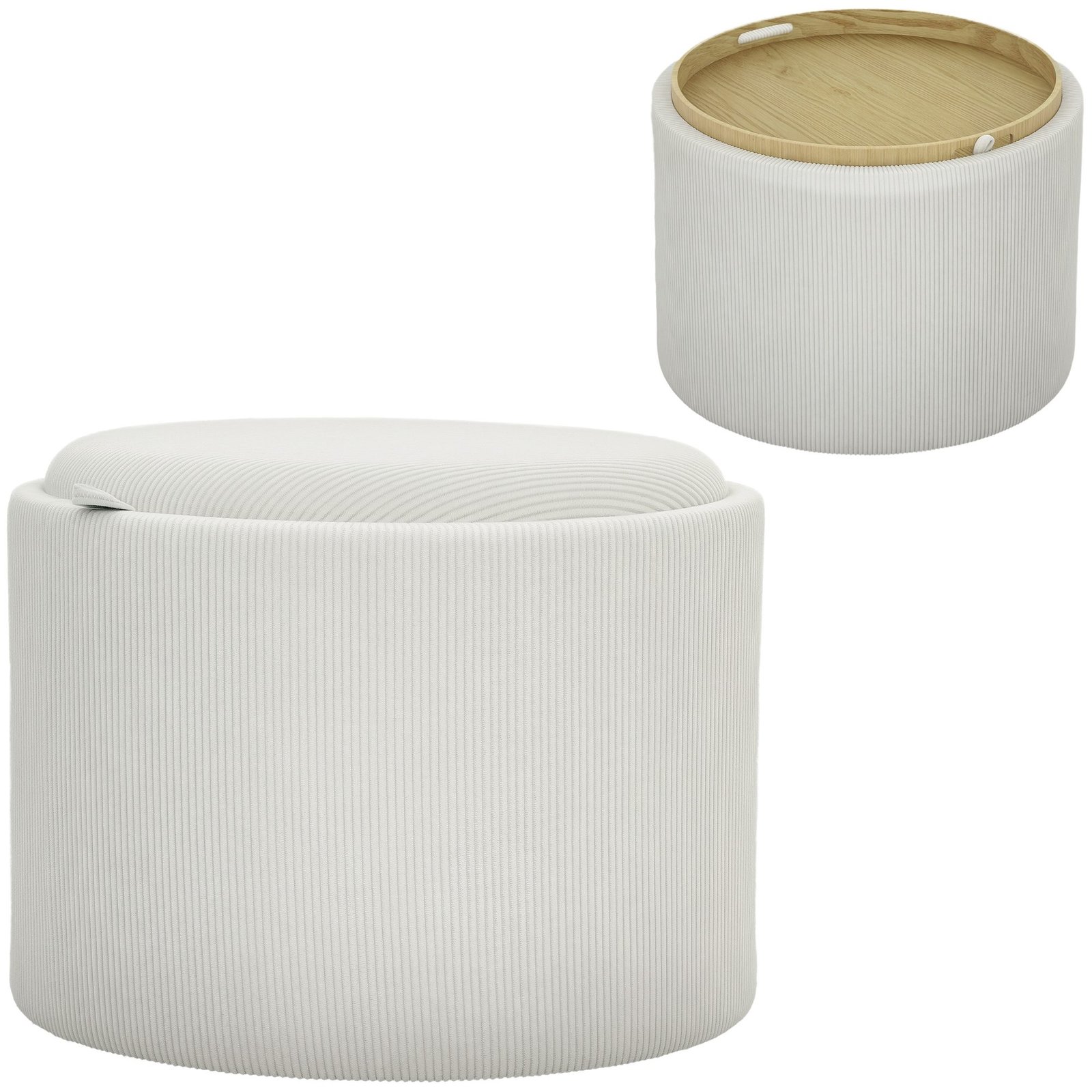 Apvalus pufas su daiktadėže ir nuimamu dangčiu-padėklu
