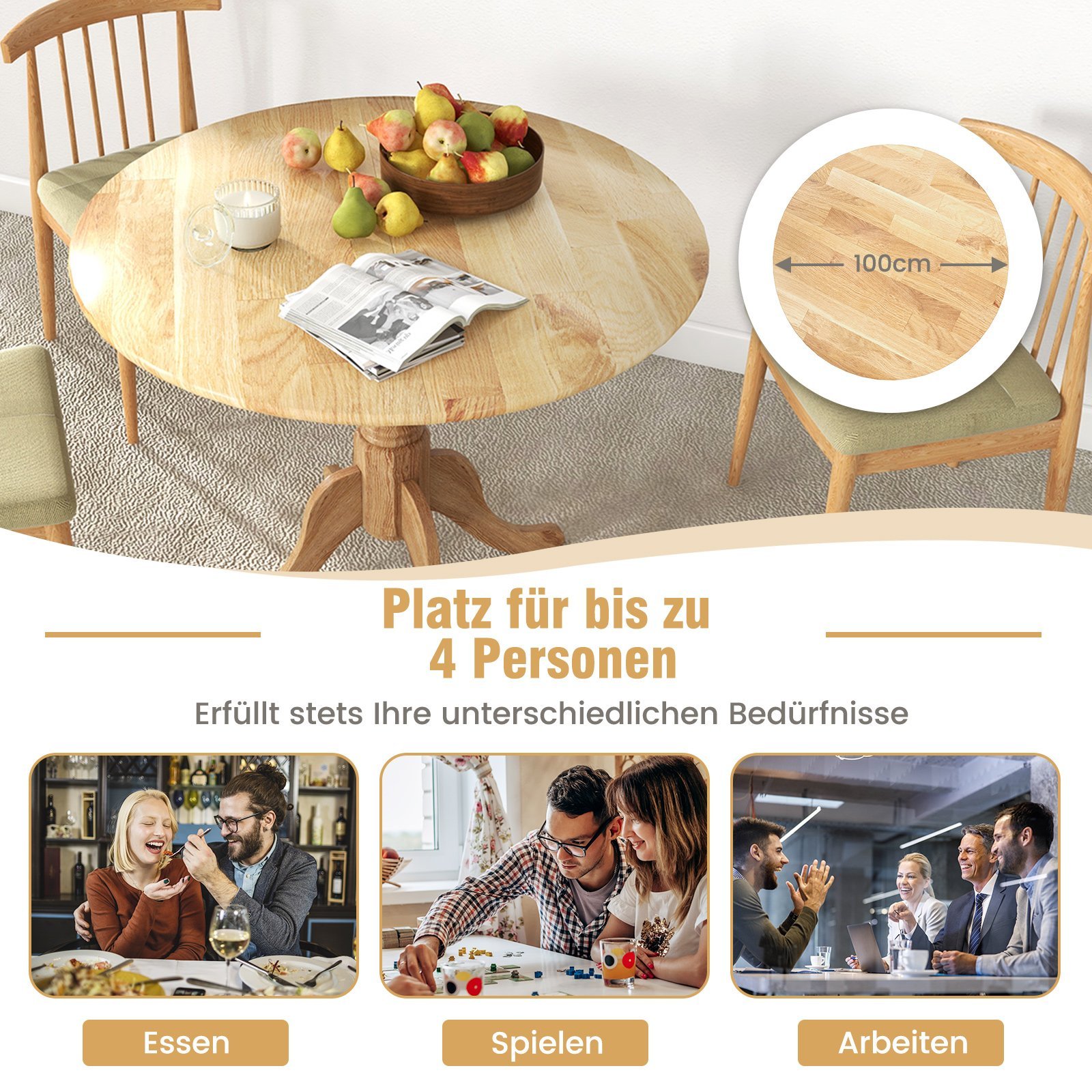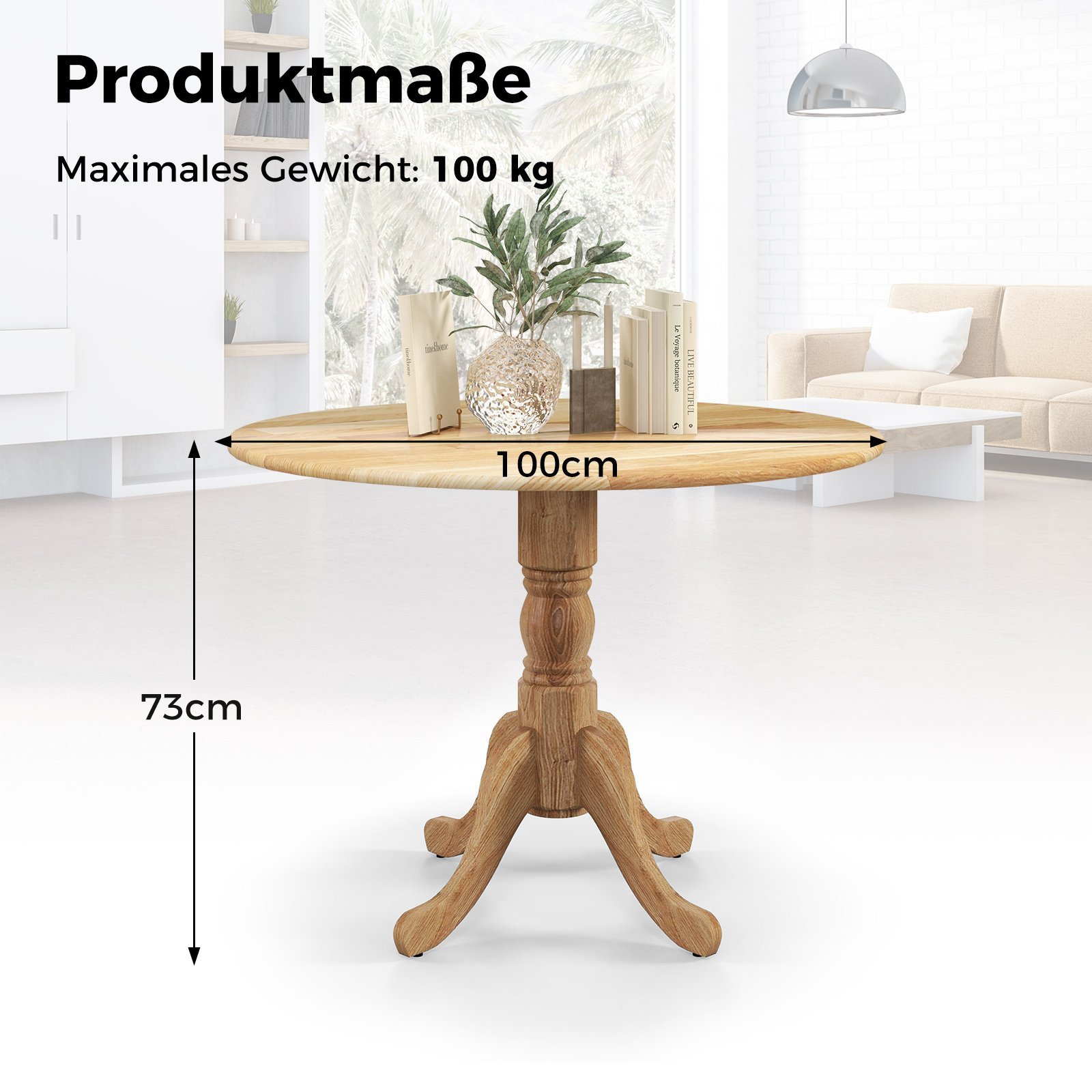 Apvalus valgomojo stalas iš guminmedžio masyvo 4 asmenims su pagrindu (Natūrali)